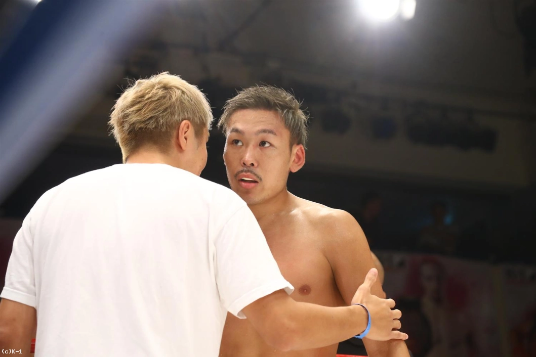 「(試合を振り返って?)強かったです。あと、顔が痛いです。(接戦になると思ってた?)全部予定どおりの展開でした。あの展開になれば負けないと思ってたので。最後は気持ちの戦いだと思ってました。いつもなら1R取って押し切れると思ったんですけど、左右田さんに巻き返されて。強かったですね。(左右田が「これで終わり」と発言していたが?)左右田さんの気持ちをついで、K-1のベルトを絶対に取ります。ここをしっかりと勝ったことで、ファイターですって胸張って言えると思うので、大きい自信になりました。(戦いたい相手は?)誰でもいいです。用意された相手に挑戦して、一個一個クリアしたいですね。(もともと左右田とは知り合いだった?)そうなんですよ、共通の知り合いもいて。二年前から左右田さんと交流があって。左右田さんはすごくいい方で、本当に尊敬してました。でも、勝負事は自分が蹴落としていかなければいけないので。左右田さんの意思をついで上に上がります。KRUSHの絶対王者になって、なおかつK-1のベルトを取りにいきたいと思います。これからも応援よろしくお願いします」