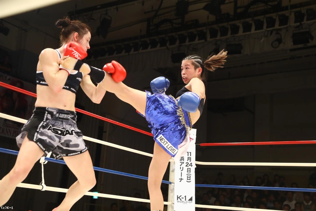 「応援ありがとうございます。この気持ちを言葉で表せないぐらいです。日本が本当にすごく好きです。ファン、会場も好きなので、今日は本当に嬉しいです。KANA選手も言っていますが、K-1のリングで女子のトーナメントを私からもお願いしたいです。日本人女子ファイターに機会を与えてほしいです。そして世界中の女子が集まったK-1のリングでチャンピオンになりたいです」