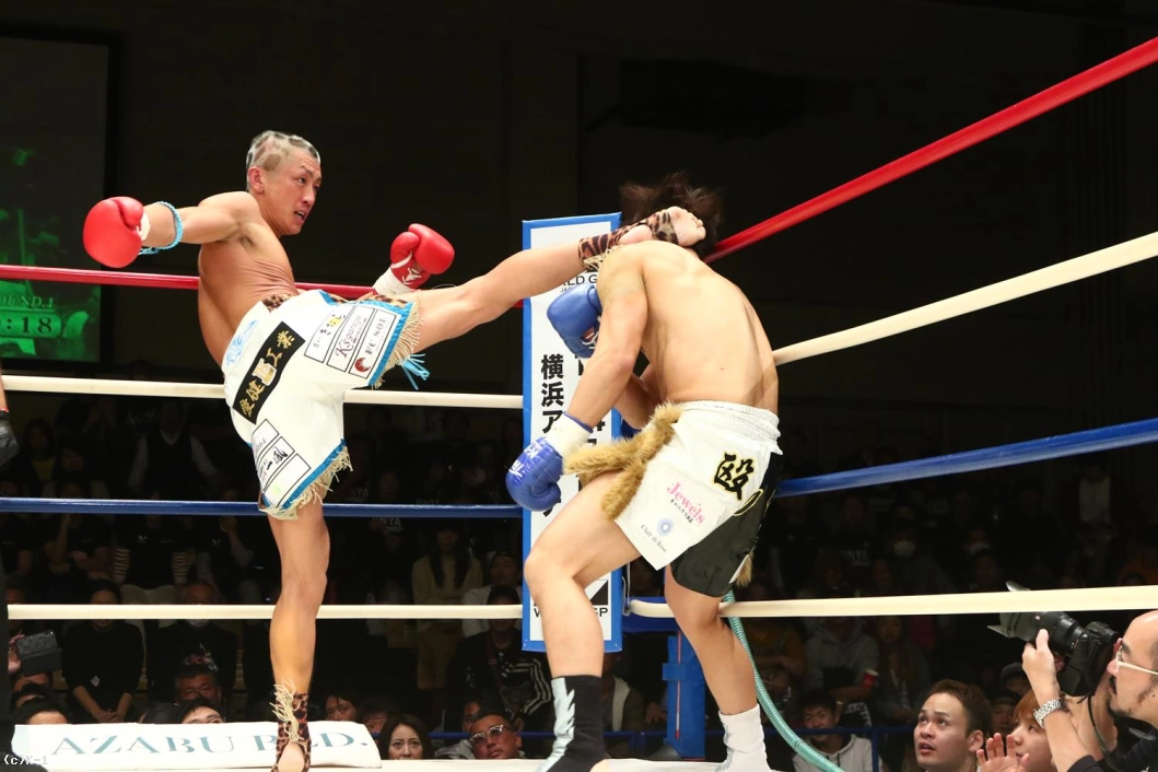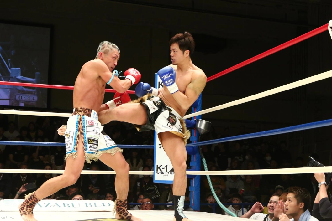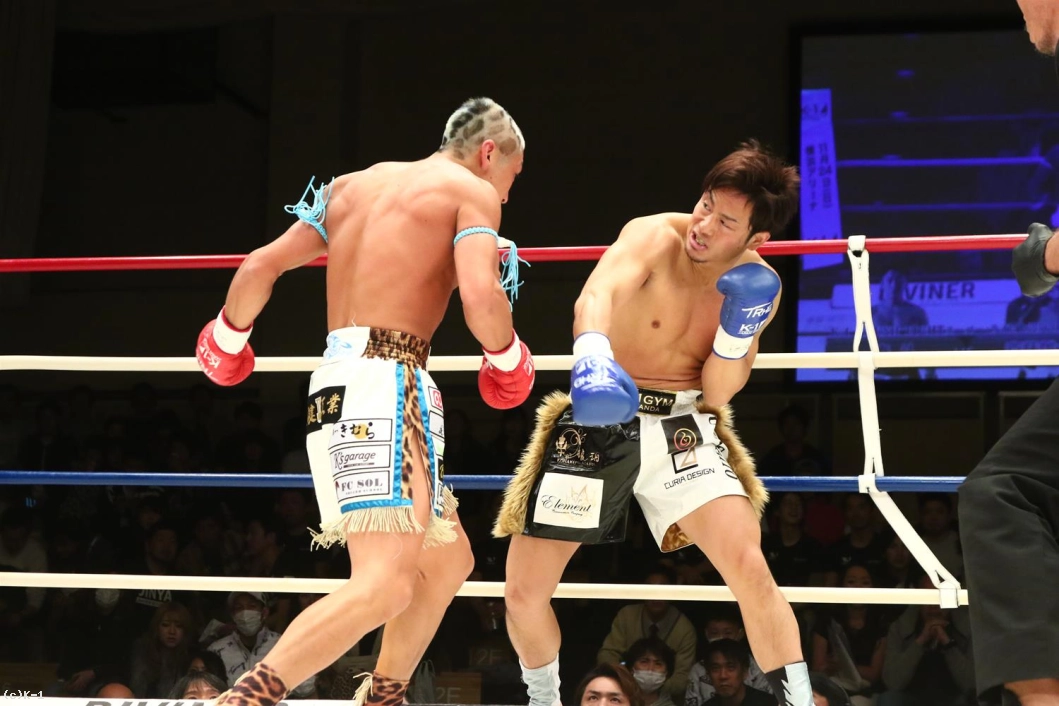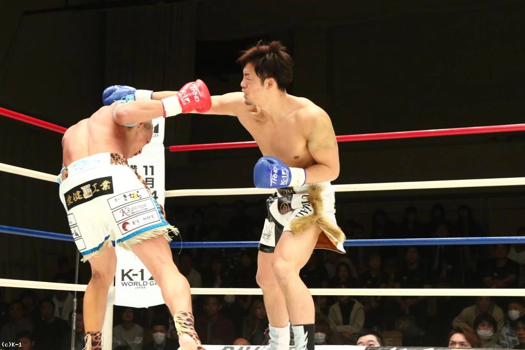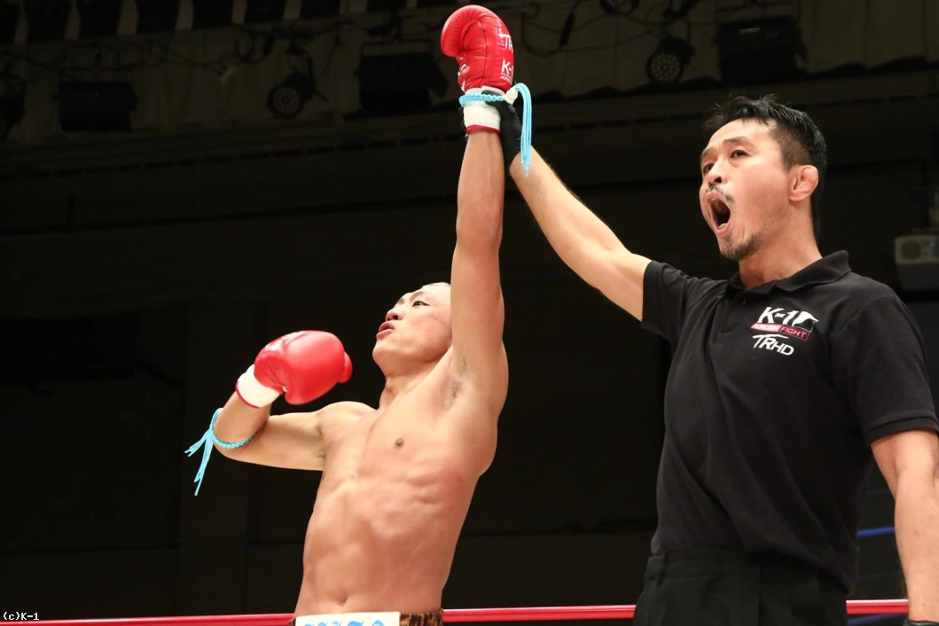 「(試合を振り返って?)本当にたくさん応援していただいて。最初は自分でも固かったのでヤバいなと思ったんですけど、倒せたのでよかったです。(対戦相手の印象は?)予想どおり、パンチをブンブン振り回してくるなって。ただ、僕の中でももうちょいパンチが強いかなと思ったんですけど、意外と気持ちが折れなきゃ効かないもんだな、と。(今後の目標は?)とりあえず来月の名古屋のK-1に、僕も絶対に出たいなと思っているので。いまさらメンツがどうとか自分の中ではないので、突っ走りたいと思います」