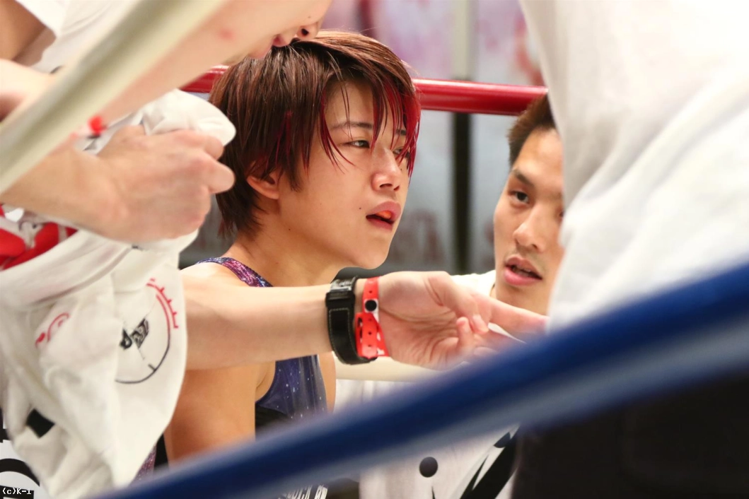 2R、優は右フックから入り、左・右とパンチを先手で振るってヒットする。チャン・リーがローを返してきても、優はそこにフックをカウンターで合わせる。そこからチャン・リーをロープに詰めると、優は左フックをボディから顔へ連係。チャン・リーを攻め立てる。チャン・リーもミドルから反撃せんとするのだが、これを優にかわされてしまい攻撃を繋げられない。