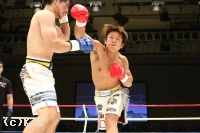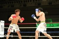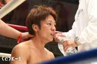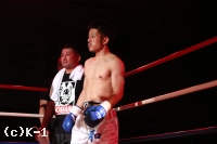 「(試合を振り返って?)三回くらいダウン取ったんですけど、倒しきれないのが悔いが残ります。(対戦相手の印象は?)空手をやってたっていうのはわかってたんですけど。今回早々に対戦相手、試合を飲んでくれたので感謝してます」