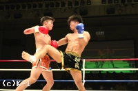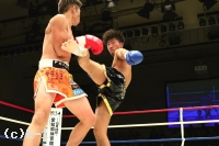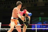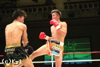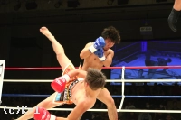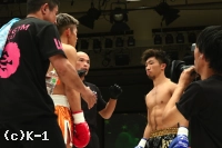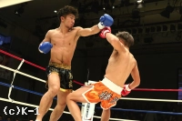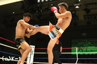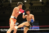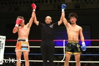3R、距離を詰めて右ストレートからパンチをまとめようとする勝輝に対し、知良は左ミドル、左ハイと見舞う。勝輝は攻撃にボディ打ちも交え、知良はスタミナが苦しいか場内の時計を気にし始める。知良は右フック、勝輝は左フックを出し合う。前蹴りから入っていく知良に勝輝は左右ボディフック&ヒザ。勝輝は突っ込んできた知良に顔面前蹴りを入れ転倒させるが、これはスリップの裁定。判定は28-28、29-28(知良)、28-28でドロー。勝輝が追い上げドローに持ち込んだ。