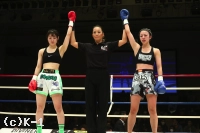 3R、森川がグッと前進してくると豊嶋は横にかわし、前蹴りを入れて森川を転倒させる。森川は右ストレート、右フックと連続で当てて前進。横にかわさんとする豊嶋だが森川が追いかける。豊嶋が左右フックをヒット。森川はさらに左右のパンチで豊嶋を下がらせる。豊嶋も右ローを当てるが、森川を止められない。判定は29-29、29-29、29-29でドロー。両者決着つかずに終わった。