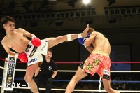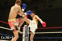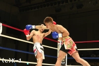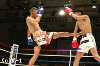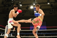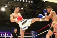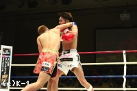 2R、高橋が少しずつ歩を進めても橋本はバックステップして距離を詰めさせない。そして左ミドル・左ハイと放ち、前蹴りの後で顔面前蹴り。これに高橋の顔が一瞬跳ねあがる。ペースを変えない高橋だが、橋本は左ストレートもヒット。橋本は左ミドルをいっそう当て、ジワリジワリとペースを握りにいく。