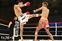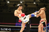 3R、高橋はボディへの跳びヒザ蹴り。そして橋本が左ミドルを当ててもすぐに右ローをリターンする。橋本は先手で左ミドルを放って当てる。高橋は前に出てプレッシャーを掛け、重い音を立てて右ボディストレートをめり込ませる。だが、橋本もこれで波に乗らせず、左ミドルと左前蹴りで高橋を遠ざける。橋本は後ろ回し蹴り、ハイキックと大技を見舞って試合を終える。判定は30−30、29−29、29−29でドロー、ハイレベルの攻防を見せた。