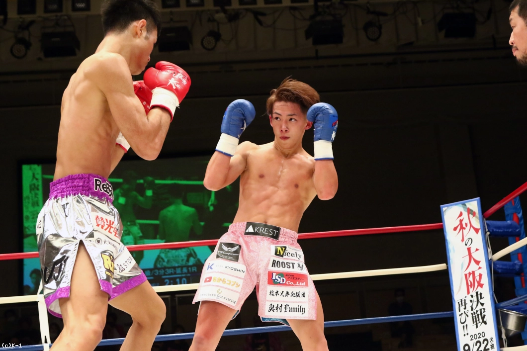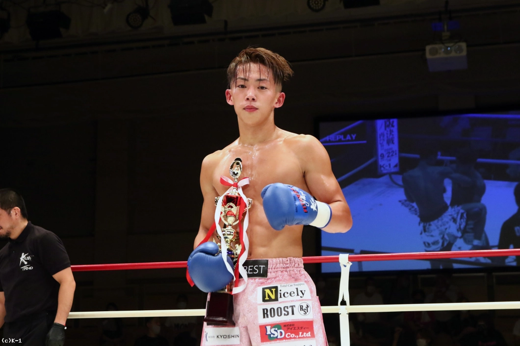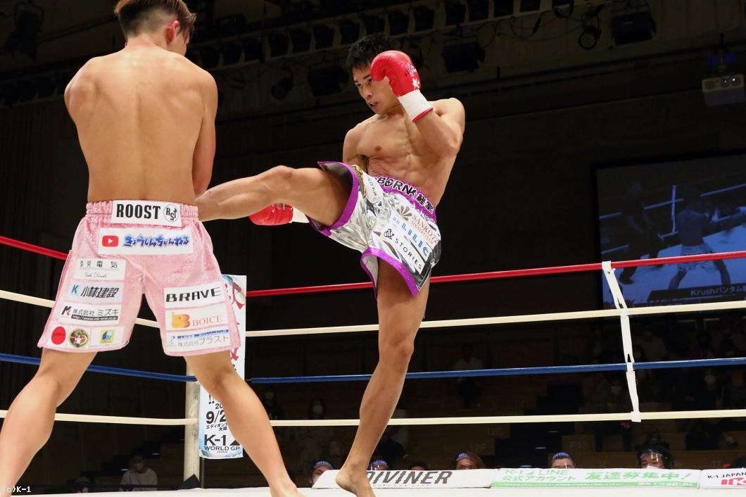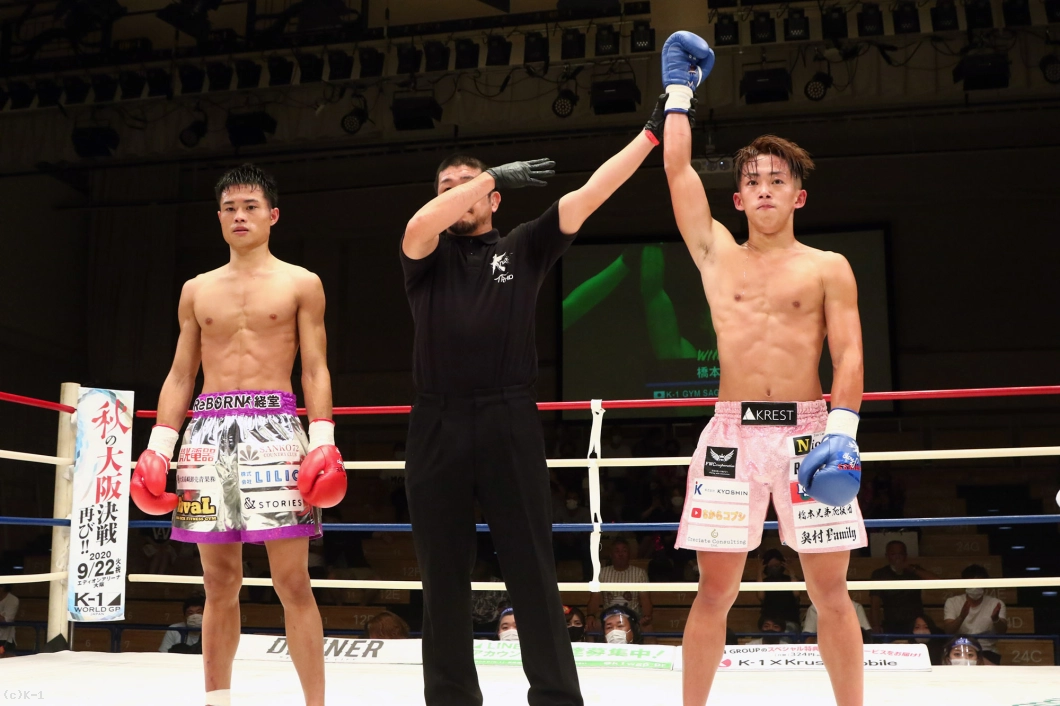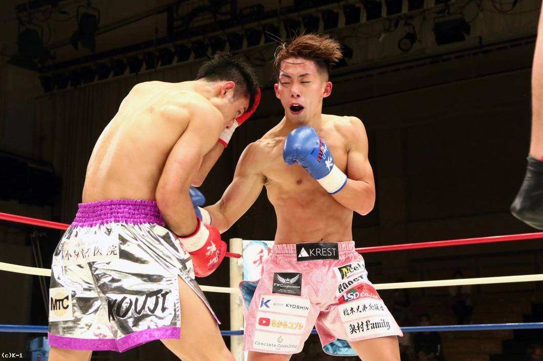 「(試合を振り返って?)とりあえずしょうもない試合してしまって申しわけないです。自分がいつも心掛けてるのは、勝っても負けても会場をメチャクチャ盛り上げることで。プロとして絶対に必要なことだと思うので、それができなかったのがくやしいです。(対戦相手の印象は?)パンチも蹴りも思ったより重いなと思いました。背が高いのもあって、距離をつかむのがちょっと難しかったです。(今後の目標は?)しょうもない試合をしてしまったんで、とりあえずメチャクチャ仕上げなあかんので、それまで特訓します」
