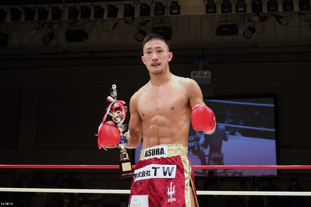 「今回の試合は倒して勝って マイクを握って感謝を伝えるまでが目標だったのですが、1年ぶりの試合で硬かったです。試合も理想通りの動きじゃなくて、倒すことがゴールだったので悔しいです。(対戦相手の印象は?)予想していた通り気持ちの強い良い選手でした。(今後の目標は?)KOで勝って12月のK-1両国大会に出させてくださいと言いたかったんですけど、この内容じゃそうはいかないです。今、僕はK-1ジム蒲田で太田代表のもとで練習しています。もっと強くなって感謝を伝えたいです」
