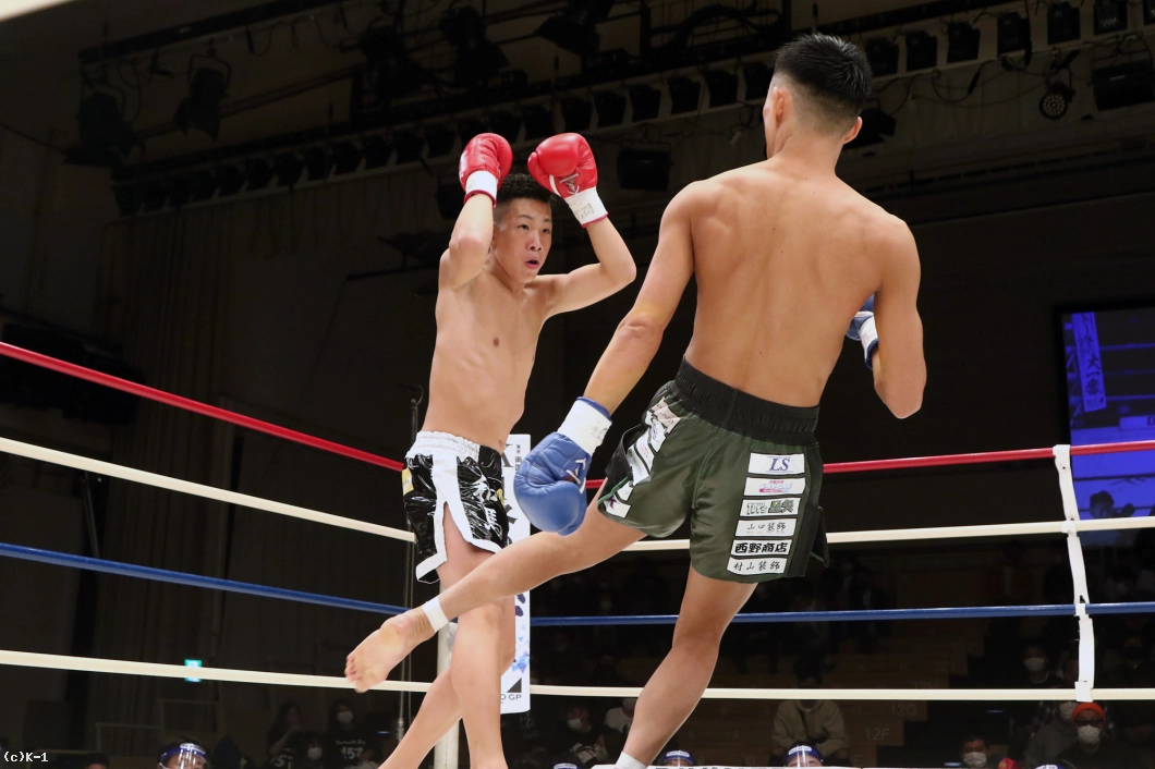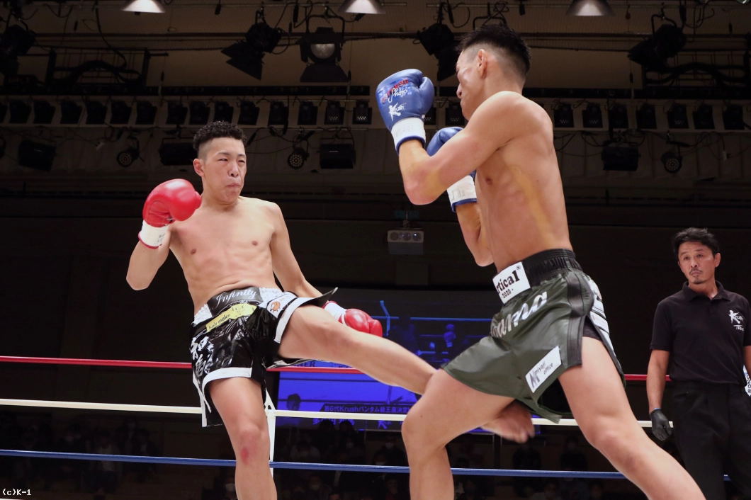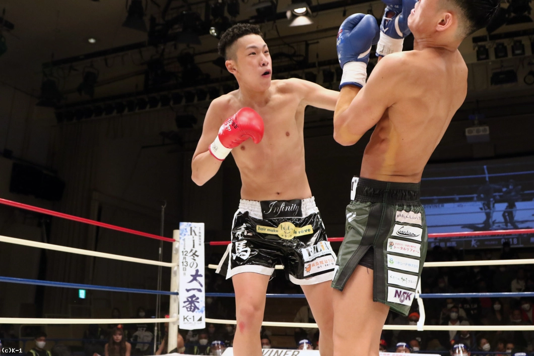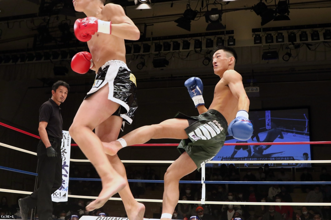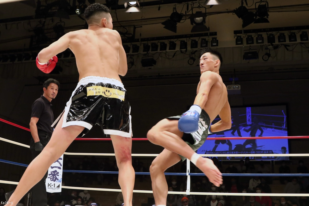 「自分的には全然やったんですけど、初めてプロでサウスポーとやっていい経験になりました。(対戦相手の印象は?)蹴りが多彩な印象だったんですけど、パンチが重くて、いい選手やなと思いました。(準決勝のメンバーが決まって)準決勝は優勝候補のビギン選手で、アマチュアで1回負けているんで、準決勝にすべてかけてやりたいと思います。(準決勝・決勝に向けて)僕が絶対チャンピオンになるんで応援よろしくお願いします」