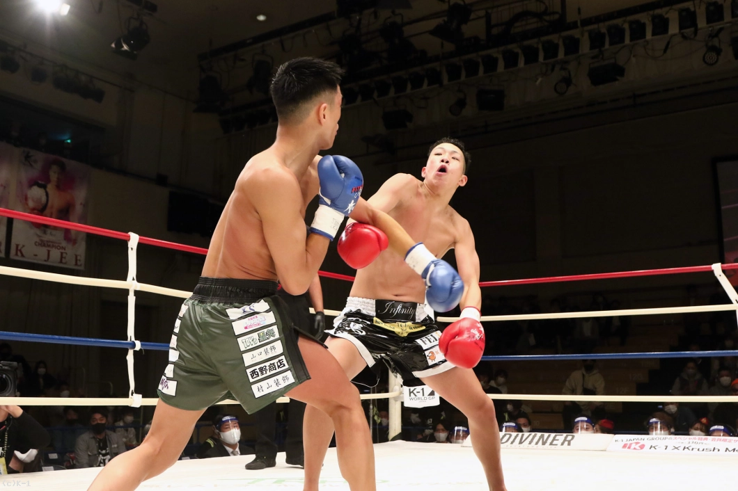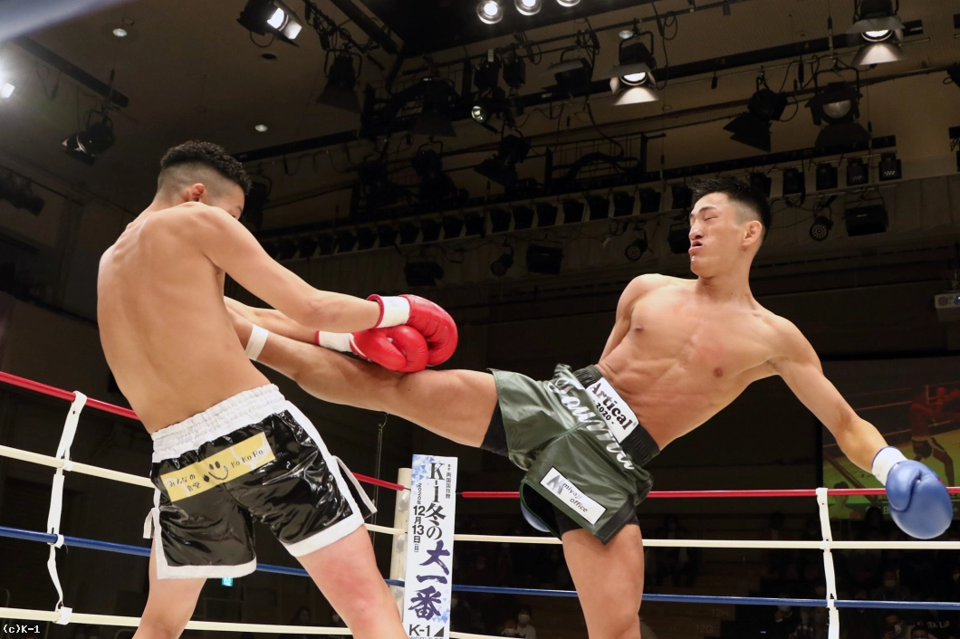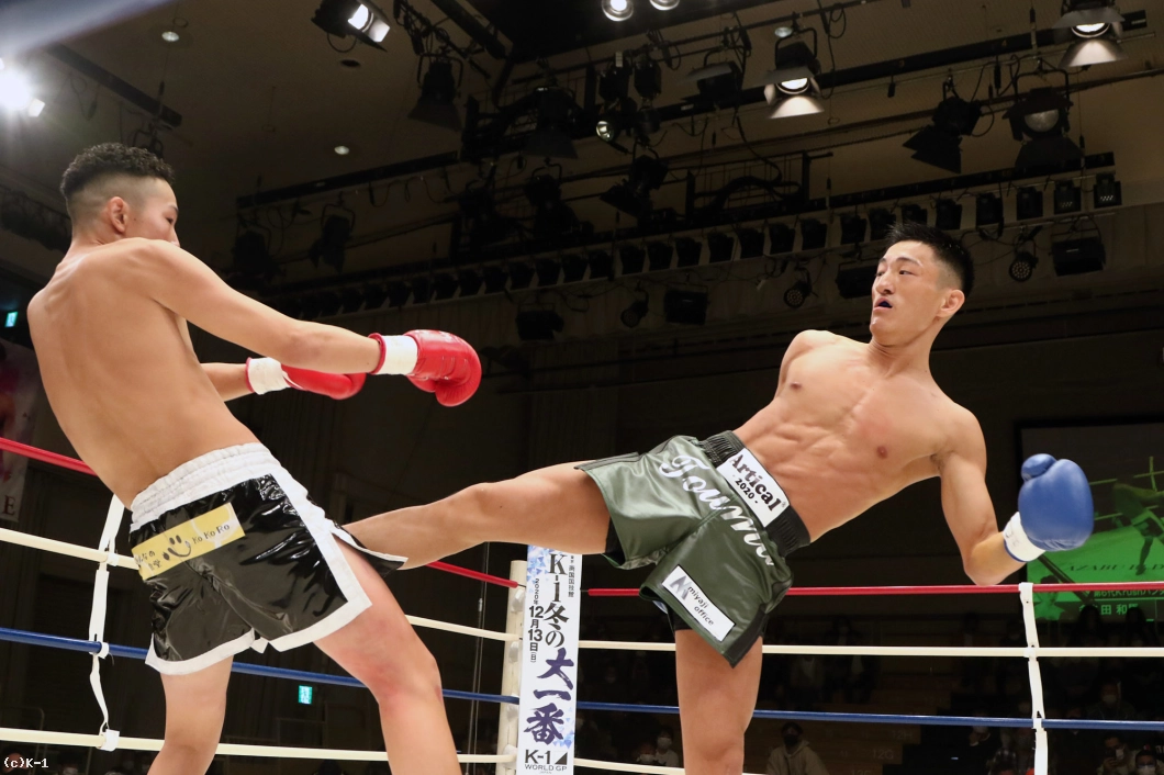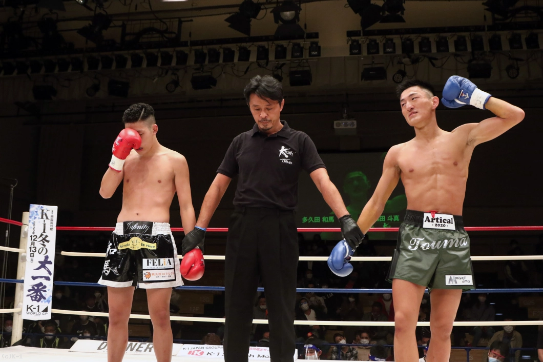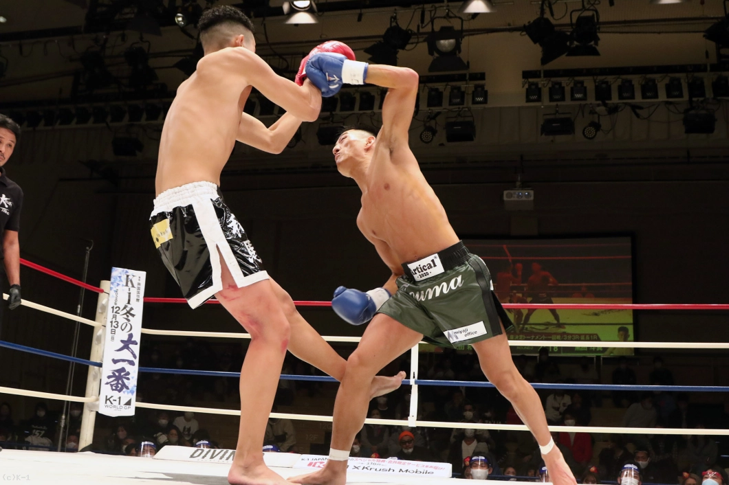 「自分的には全然やったんですけど、初めてプロでサウスポーとやっていい経験になりました。(対戦相手の印象は?)蹴りが多彩な印象だったんですけど、パンチが重くて、いい選手やなと思いました。(準決勝のメンバーが決まって)準決勝は優勝候補のビギン選手で、アマチュアで1回負けているんで、準決勝にすべてかけてやりたいと思います。(準決勝・決勝に向けて)僕が絶対チャンピオンになるんで応援よろしくお願いします」