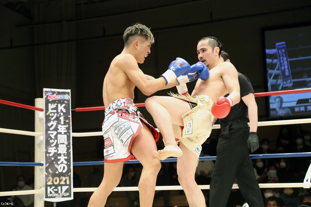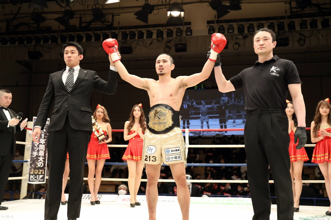 (押しきれなかった?)それはないんですけど、本当はもうちょっと前に行きたかったと思います。(研究された感覚はあったか?)ありましたね。でもこちらも研究していたので。(カーフキックを蹴られていたが?)すねでカットしていたので、嫌だなとは思いましたけど…効いてはないですかね。大丈夫でした。(ベルトを防衛して自信・手応えは?)どうなんですかね…まだ自信はないです(苦笑)。(K-1王者になりたいという発言もあるが)やっているからには一番上を目指しているので、K-1王者にもなりたいです」