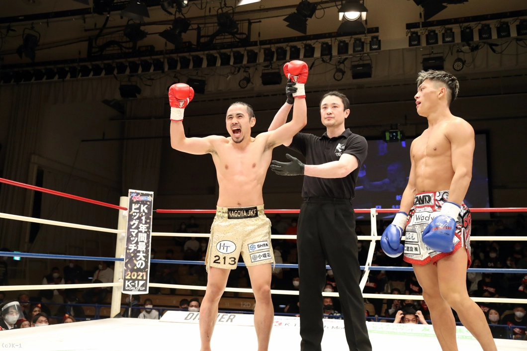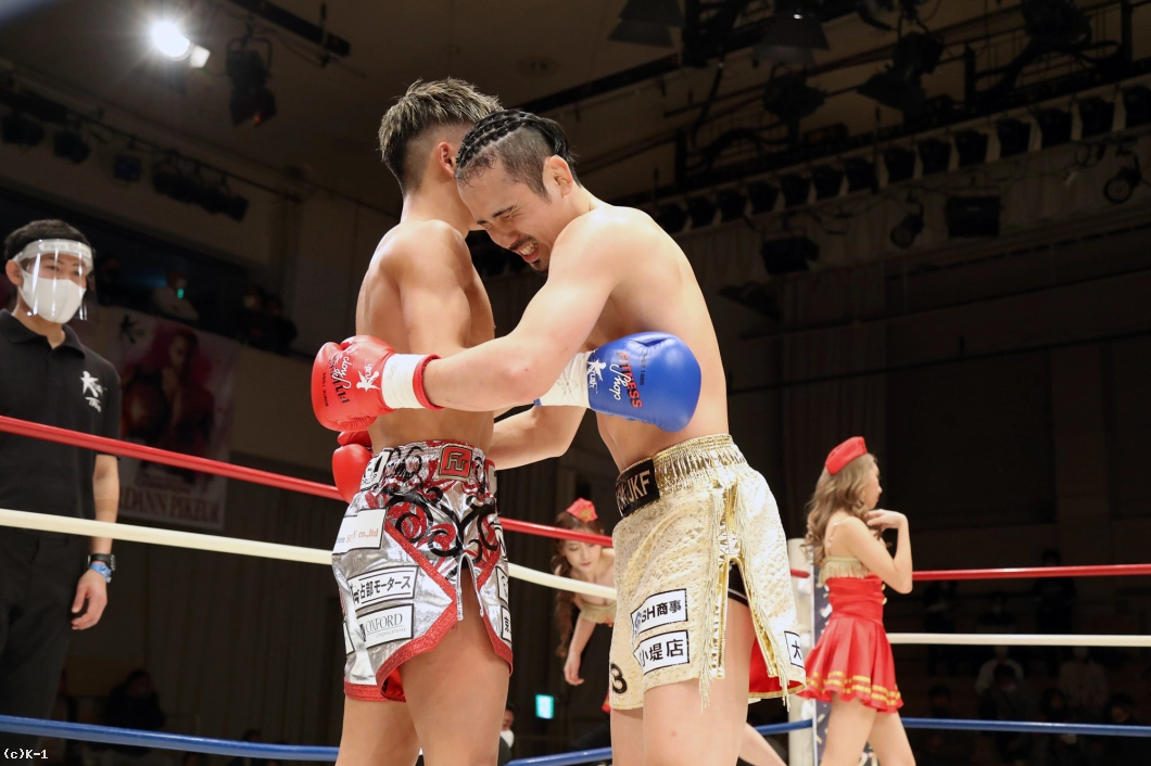 「今日は会場まで見に来てくださった方、応援してくださった方、力になりました。対戦してくださった斗麗選手、ありがとうございます。もっともっと強くなると思うので斗麗選手の応援もよろしくお願いします。2年前の2月にお爺ちゃんが亡くなったので、今日の勝利はお爺ちゃんに捧げたいと思います。これからもっともっと強くなって、K-1のチャンピオンにも僕はなるのでよろしくお願いします」