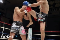 3R、稲垣は打点の高い顔へのヒザで龍斗を襲い、その後の脚へのヒザを効かせ龍斗をコーナーに詰めてパンチ&ヒザのラッシュ。だが龍斗はこれを持ち応え、前に出て行く。しかし稲垣は前進して龍斗に圧力を掛ける。だが龍斗もヒザとボディパンチで稲垣を後退させる。両者コーナー際でパンチ&ヒザで攻め合うが、リング中央に戻ったところで稲垣がショートフックを効かす場面を作る。
