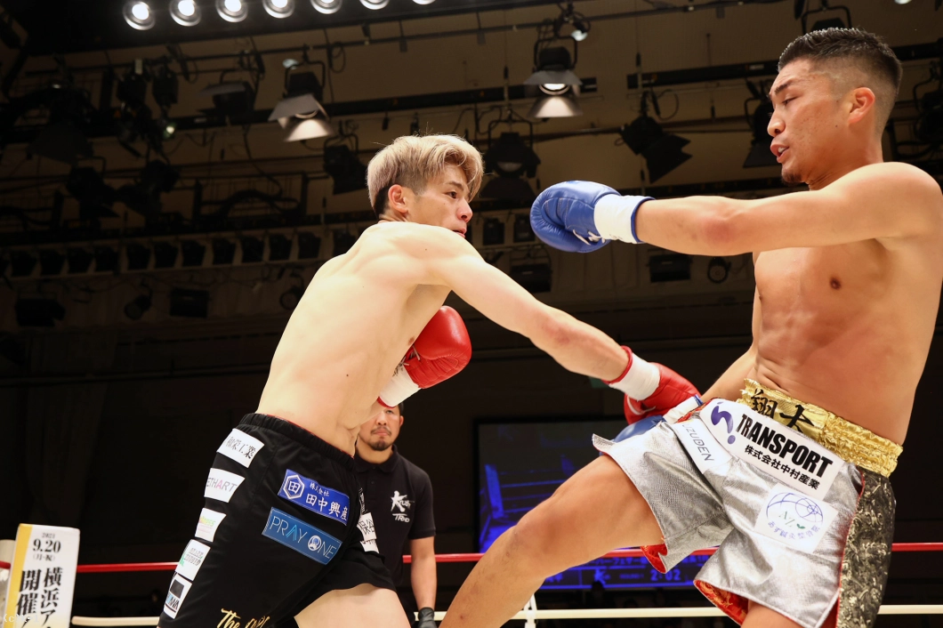 2Rも目黒は手数を落とさず、右フック、左ストレート、ローと佐野を攻める。さらに連打をまとめ上げ、佐野に鼻血を出させダウンを奪う。立ち上がった佐野は右アッパー、右ストレートと反撃するが、目黒はこれをクリーンヒットさせず左ミドルでボディをエグりつつパンチのヒットを積み重ねる。