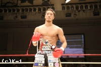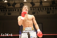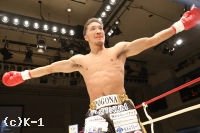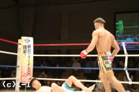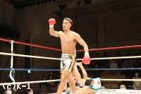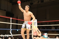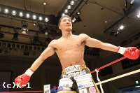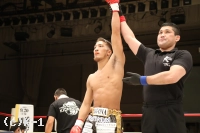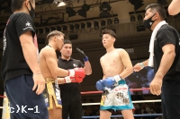 「練習していたバックハンド(ブロー)が当たって勝ててホッとしています。(対戦相手の印象は?)僕はウェルター級では背が小さい方なんですけど、絢太選手は僕より5㎝以上身長が高いんでやりづらいかなと思っていました。でもうちのポゴナクラブには背が高い海斗がいて、彼と一緒に対策していました。(今後の目標は?)チャンピオンになるためには加藤虎於奈を倒さないといけないので、虎於奈を倒す練習、バックハンドを練習しようと思います」