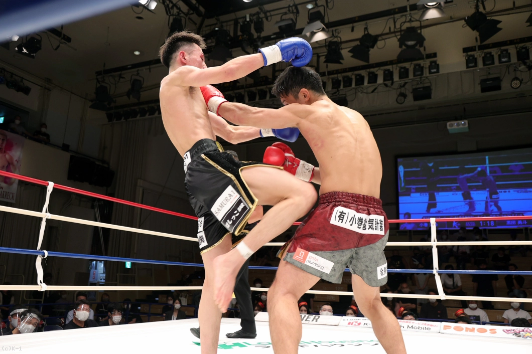 延長R、小巻が右ストレートを当てるが、黒田もボディへのヒザで対抗。黒田はジャブ、左ミドル、右ローと入れ、小巻が入ってくるとプッシングで押し放す。懐に入れなくなってくる小巻。黒田は左ミドル、右ローと当てるが、小巻も左フックで黒田をとらえる。判定は3者10-9で黒田。延長で小巻を振り切り勝利した。