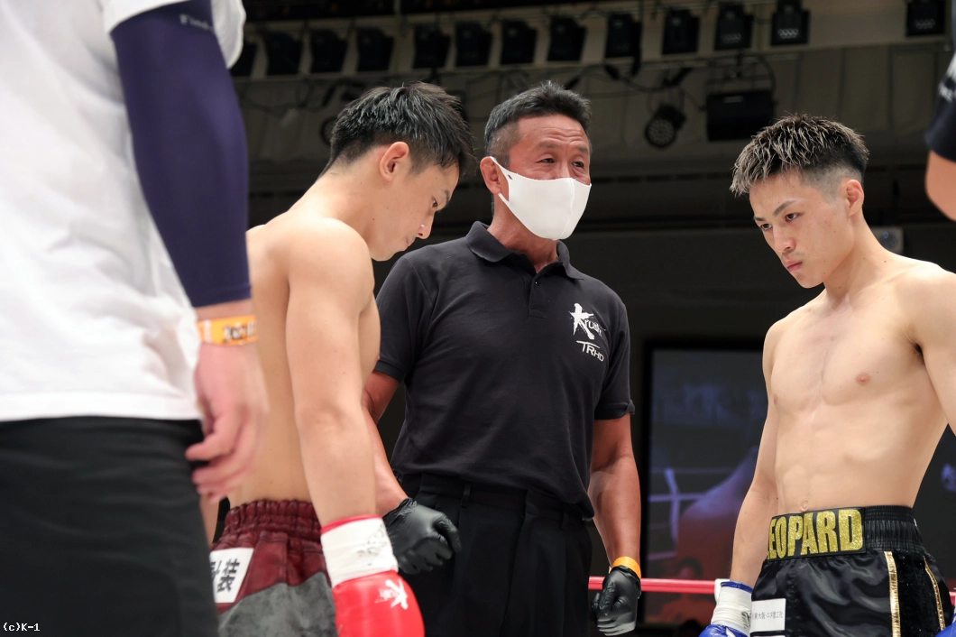 3Rも小巻は手応えのあったボディフックを振るっていく。だが黒田は前進にカウンターの左ストレート、飛びヒザと対処を見せ始める。しかし小巻は前進のギアを変えず左ボディから右フックを連係。黒田もヒザ、左ミドルを返して終了となる。判定は30-29(小巻)、29-28(黒田)、29-29と三者三様となり延長戦で勝負を決することとなる。