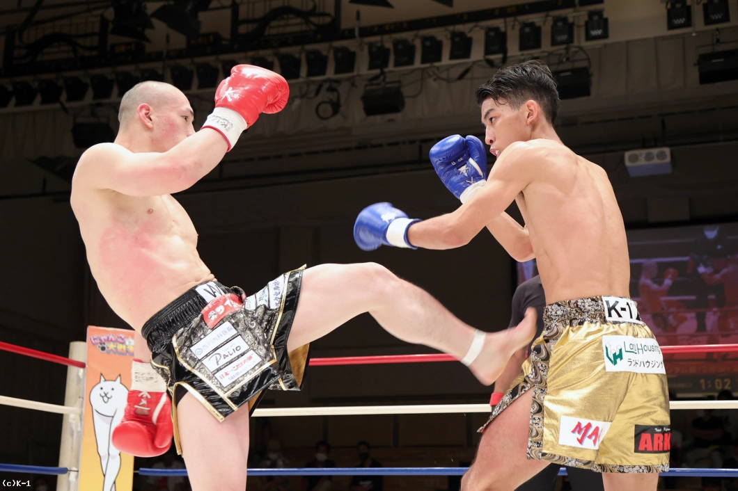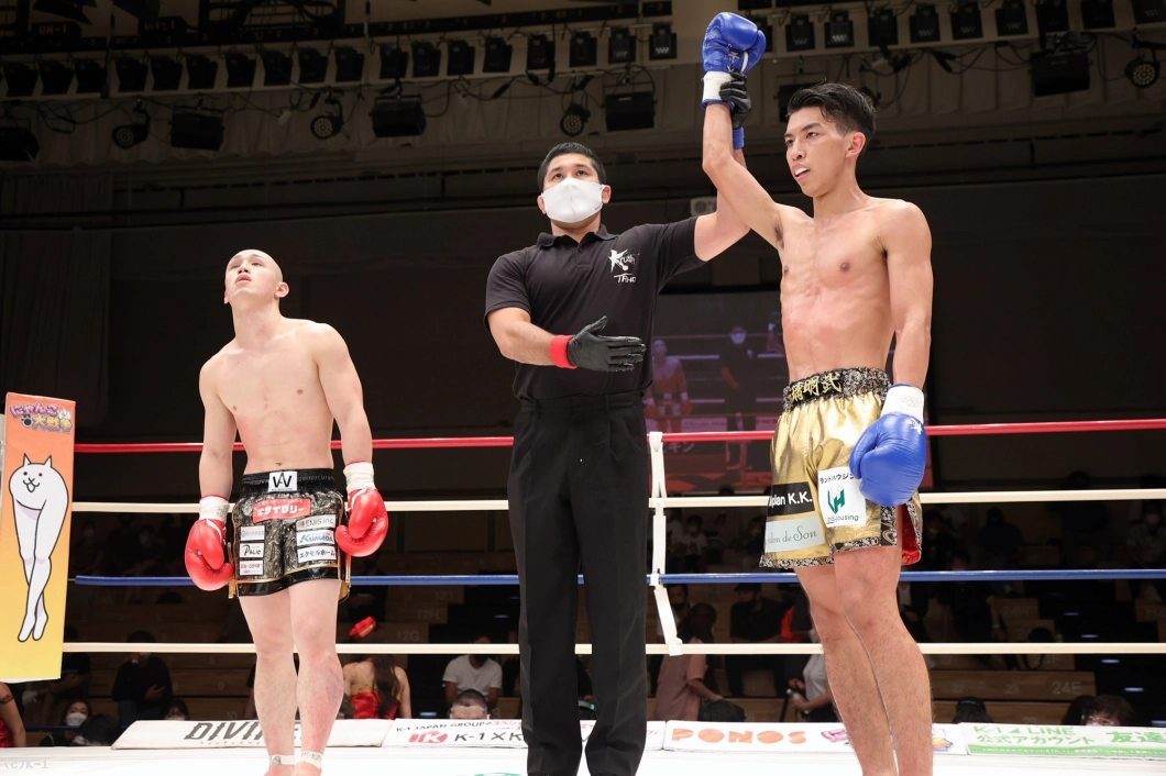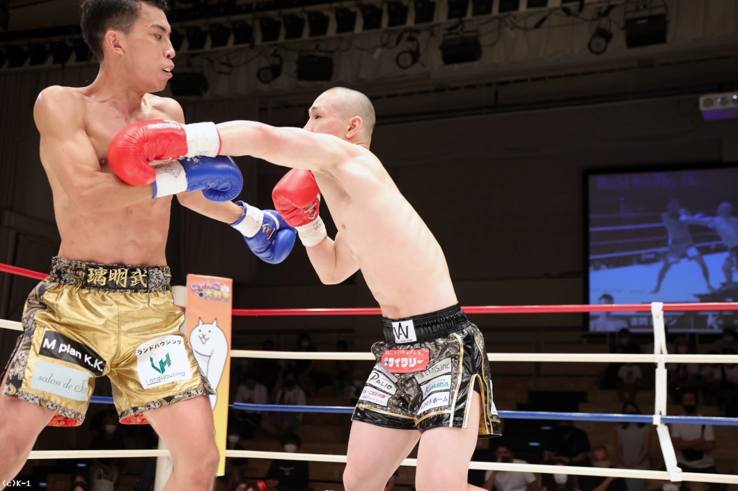 3R、カーフを警戒される璃明武は通常の右ロー、左インロー、右ミドルと打ち込む。吉岡はカーフを嫌がりサウスポーに変わる。後ろ回し蹴りの大技も繰り出していく璃明武だが当たらない。吉岡も対抗してバックブローを放つがやはりクリーンヒットとならず、終了のゴングが鳴る。判定は30-28、30-28、30-28の3-0で璃明武。吉岡の良さを出させず勝利した。