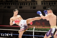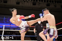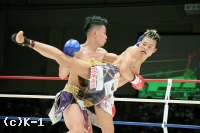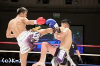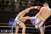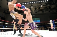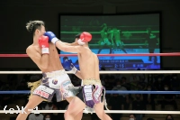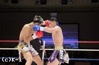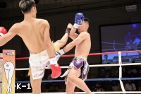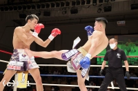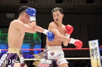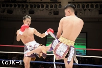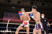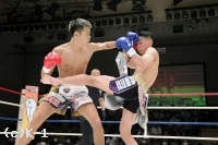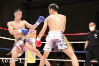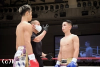 2R、池田は左ミドル、左インローと打ち込み峯を近づかせない。だが、ここで池田の左インローが峯にローブローとなってしまい一時インターバルが取られる。再開すると、池田はやはりリーチを活かして距離を取り、逆転を狙い前に来る峯にローを当てる。そして再び放った飛びヒザも峯にヒットさせる。