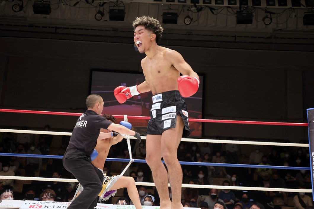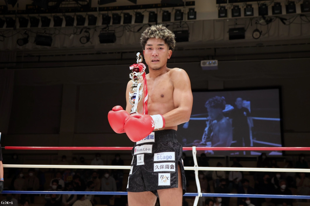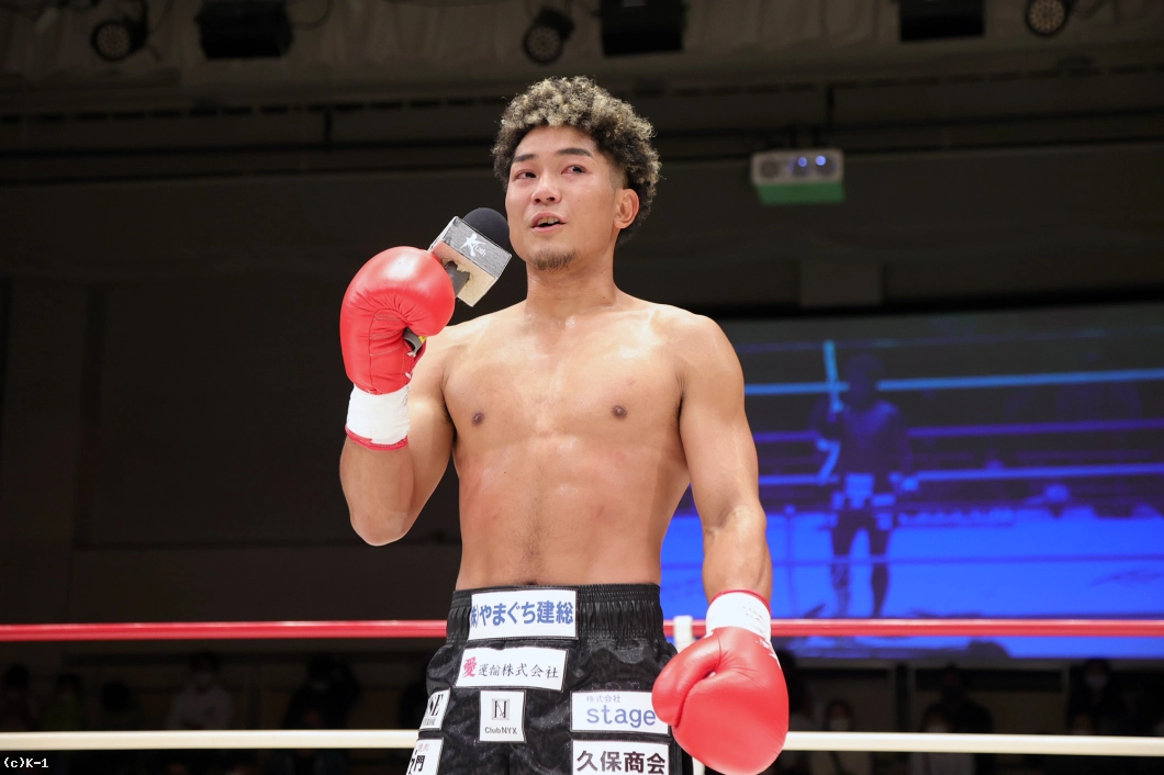 「久々の試合だったんで勝ててホッとしています。(対戦相手は)もっとバンバンミドルとか蹴ってくると思ったら、思ったより近くまで行けて。ただヒザ蹴りがちょっと怖かったです。(約2年ぶりの試合で仕上がりは?)結構前もって動いてきたんで体の調子はよかったです。いい感じで動けました。(今後は?)復帰戦でいい勝ち方ができたんで、もっともっと頑張っていきます」