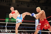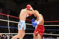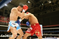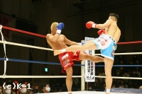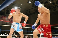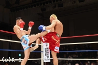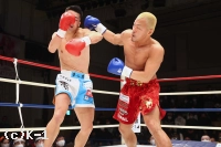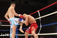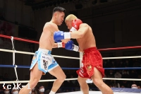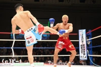 1R、オーソドックスの中島に対し、友尊はサウスポー。右ミドルを放つ中島に対し、友尊は左ストレート、左フックと振るっていく。友尊はさらに左右のフックをブンブンと振っていくが、中島はその合間にカウンターの左フックを放って当てダウンを奪う。中島はここで止まらず、立ち上がった友尊を左右フックでロープに詰め、顔へのヒザを突き上げて2度目のダウンを奪い、KOで準決勝を突破した。