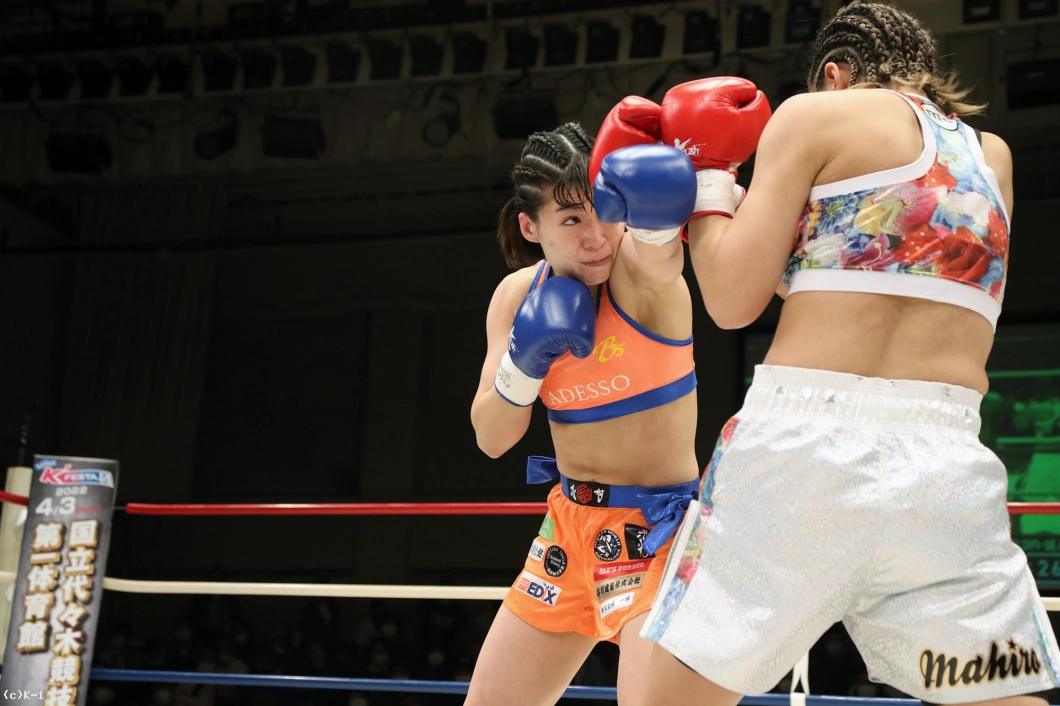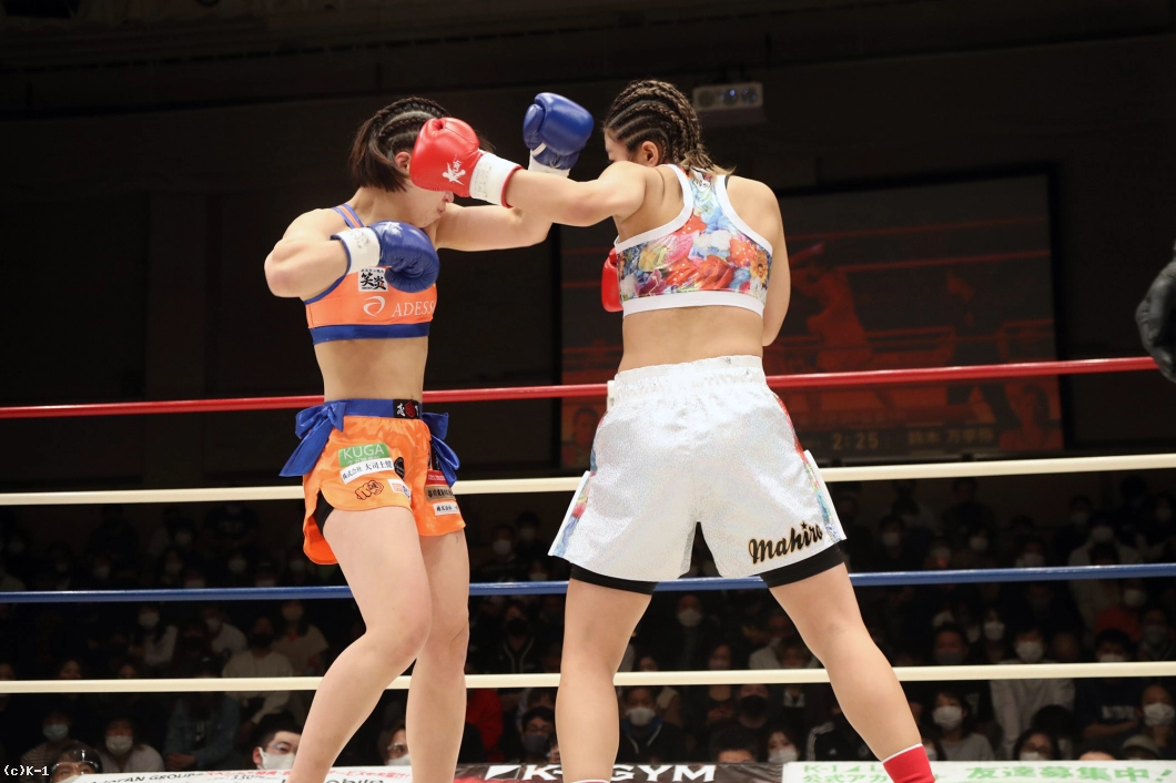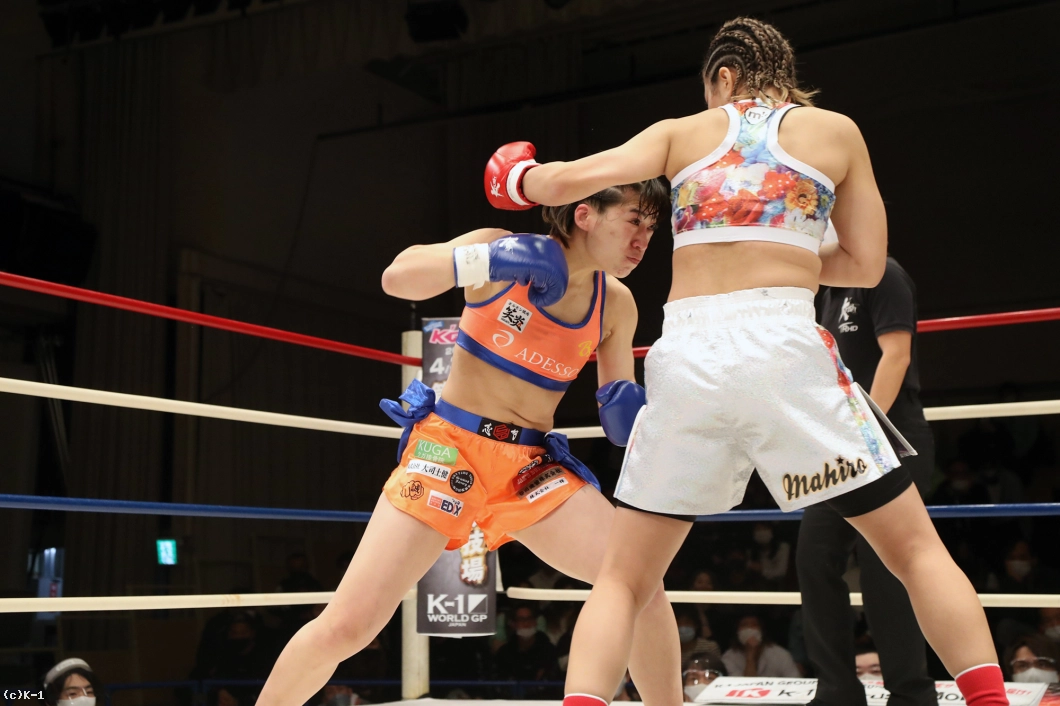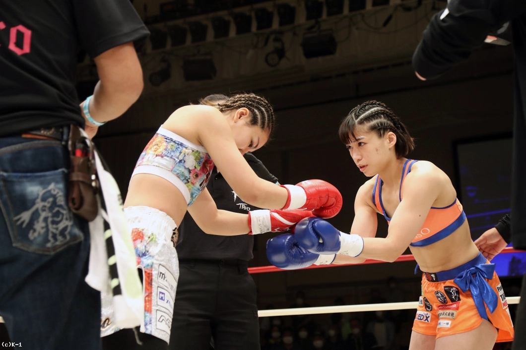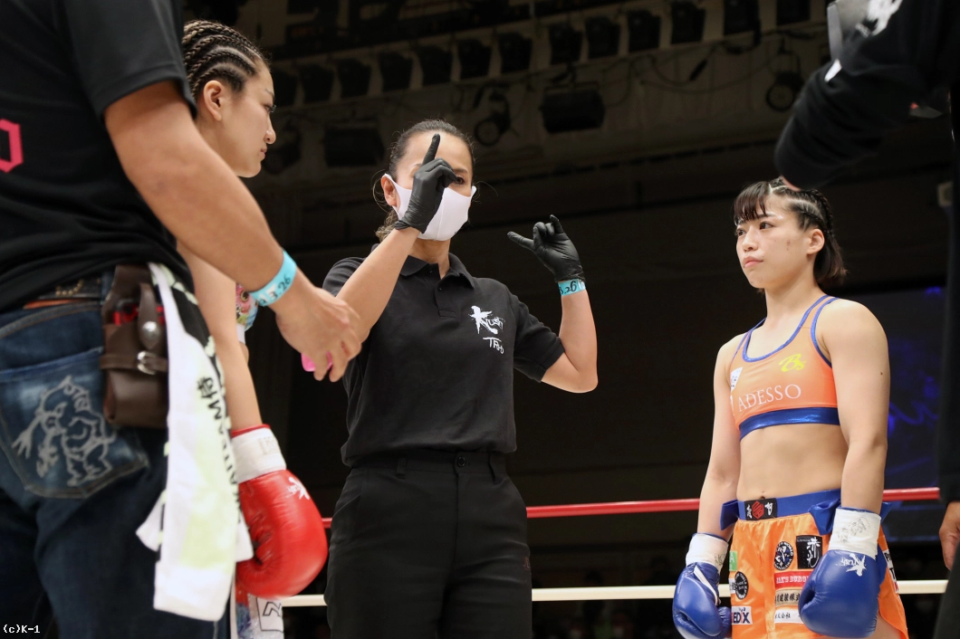 「すごい相手選手も強い気持ちだったので、乱暴な試合にはなってしまったんですけど、熱い試合ができたかなと思います。(対戦相手の印象は?)試合後に挨拶にいってきたんですけど、悔し涙を流していて。でも笑って応えてくれて良い選手だなと思いました。(Krushの印象は?)思っていた通りにレベルの高い選手も多くて面白い大会でした。(今後の目標は?)しっかり実力をつけて戦える選手に育つことと、6月のK-1女子大会に出て盛り上げていけたら良いなと思います」