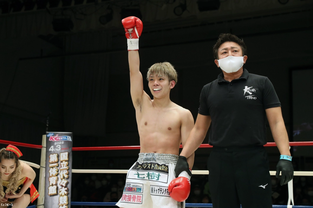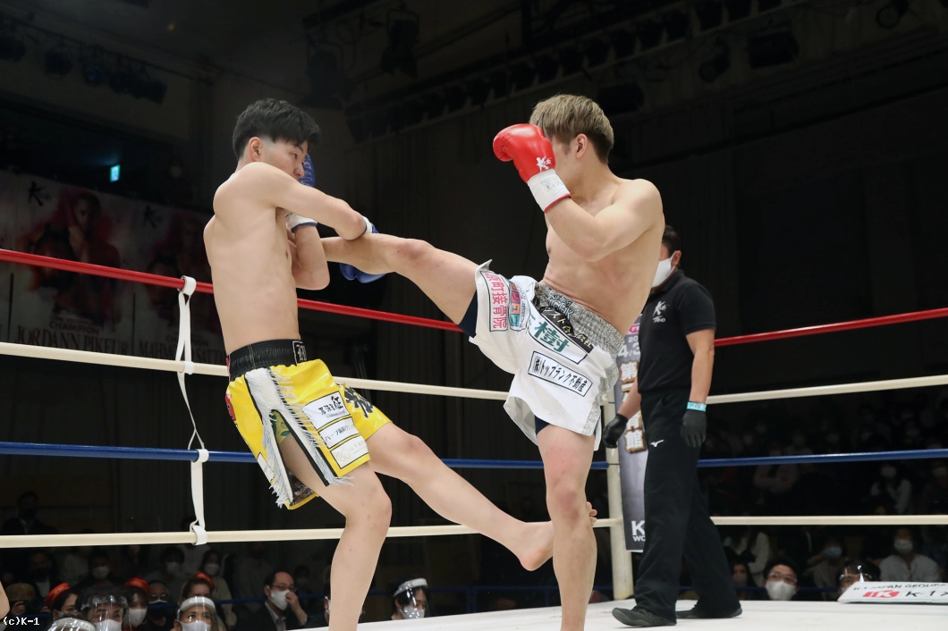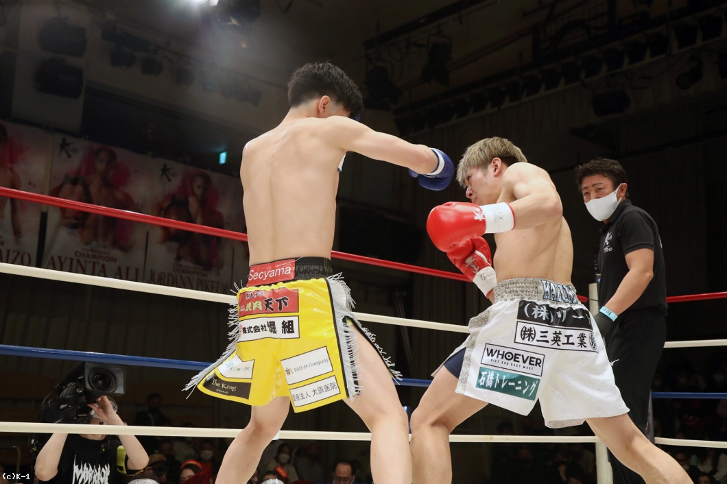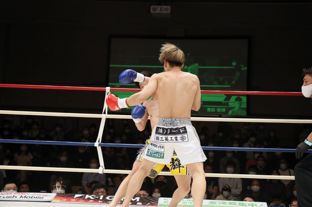 立ち上がった豊田に藤田は左フックを再び当て、そこから連打でスタンディングダウンを追加して初回を終える。