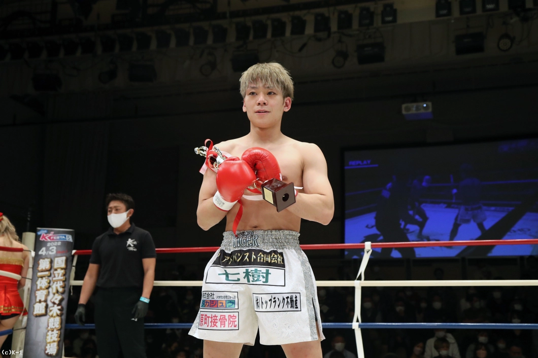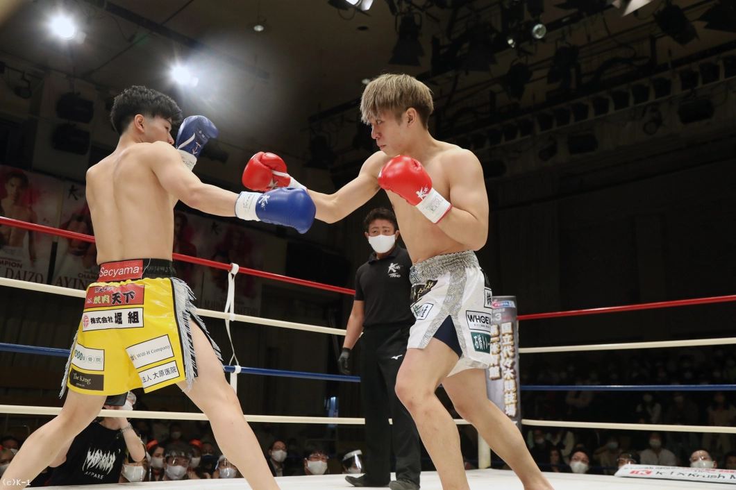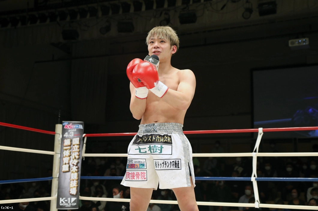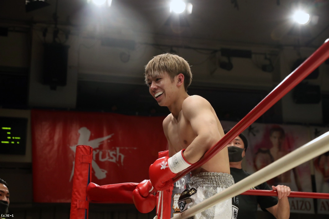 「練習でやってきたことが本当に全部出たかなと思います。(対戦相手の印象は?)あっちからも倒す気が感じられたので、最初から打ち合えたのかなと思います。(今後の目標は?)ベルトだけです」