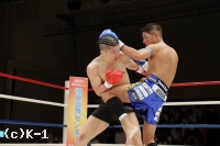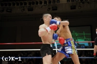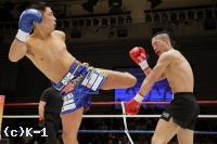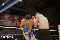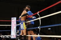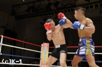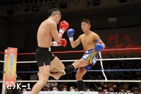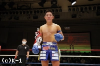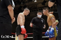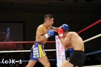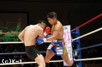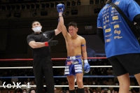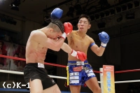 2R、弘輝は左ミドルで脇腹をとらえて明戸に効かす。その後も前に出て明戸を下がらせ、パンチと蹴り、バランスよく攻撃を散らす。右フック、ボディへのヒザ、前蹴りと弘輝は荒くならず明戸のガードを見て攻撃を使い分ける。そしてコーナー際で三日月蹴りを突き刺しダウンを奪う。立ち上がる明戸だが弘輝は再びの三日月蹴りから連打を集め、レフェリーが試合をストップした。