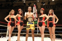 「ウェルター級はチャンピオンが防衛できないってジンクスがあって、プレッシャーもあったんですけど、しっかりKOで締めることができて本当によかったと思います。(対戦相手の印象は?)もともとスーパー・ライト級の選手なので、体格の差は出たのかなと思います。でもこの階級に挑戦してくれて、同世代ということで久々に負けたくないって気持ちが出たし、久々にKOできてよかったです。(2Rで中野選手がパンチで前に出てきても、打ち返したが?)1Rでダウンを取っていたのと、相手が蹴りを嫌がっているのが分かったので、打ち負けないと思って打ち合いました。(受けたパンチの威力は?)パンチは強かったと思います。でも仮に一発一発が強くても、(もともとの)階級が上の僕の方が強いと思ったんで、そこは上手くいったかなと思います。(打ち合ったのは、打ち合っても大丈夫だと確信したから?)いや、メインでKOを目指していた時に、あそこで逃げたら王者じゃないと思って打ち合いました。