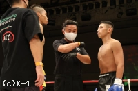 2R、寧仁太は遠い間合いを保ってロー、カーフキックをヒット。中野は左右フックを強振してくるが、寧仁太はヒザを返し、中野のパンチの内側を抜くようにワンツーを返してヒット。中野はダウンを喫し、立ち上がらんとするも体が言うことをきかず、寧仁太のKO防衛となった。