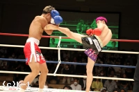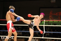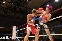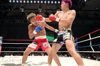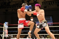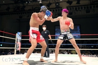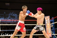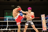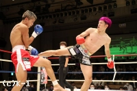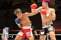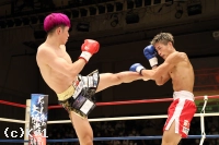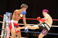 1R、サウスポーの増井はロー・ミドル・ハイと左の蹴りを積極的に放っていく。鈴木に蹴りがローブローとなってしまい一時インターバルとなる。鈴木は増井の蹴りを受けながらも前に出るが、増井は蹴りに加え左ストレートで迎撃。増井のヒットが目立つ。