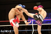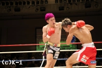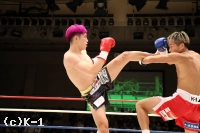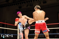 「僕が想像していたよりもガンガン前に出てきたんで、作戦通りにいかない部分があって押されちゃいました。(K-1ルールへの対応は?)大分K-1ルールに特化した練習をしたつもりだったんですけど、まだまだだなってところもありました。でも修正できると思うのでがんばります。(今後の目標は?)ライト級は人数は多いけどスターがいないので、僕がスターになりたいと思います」