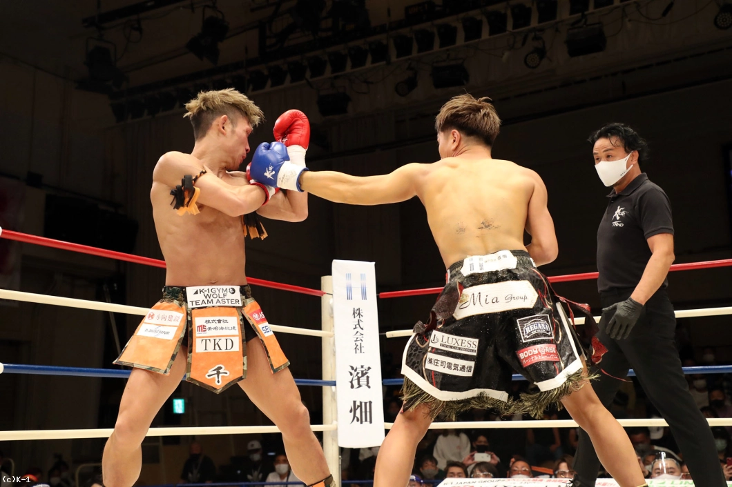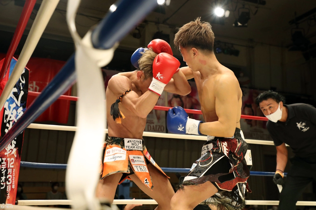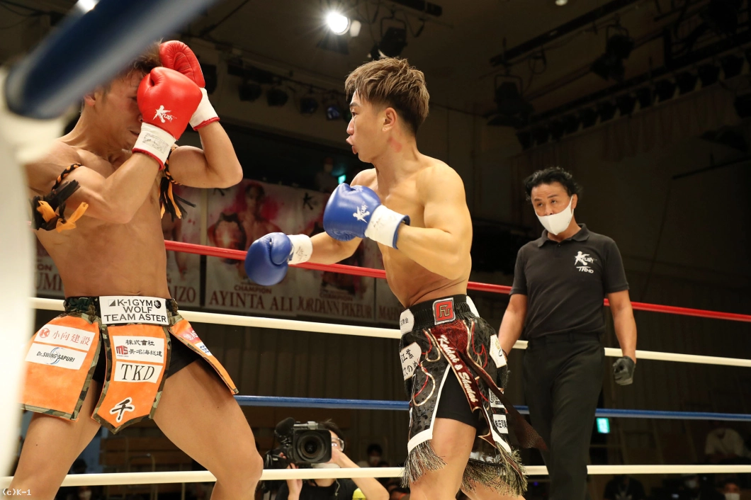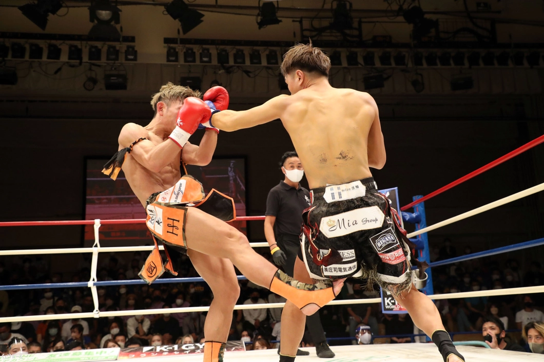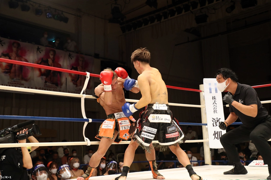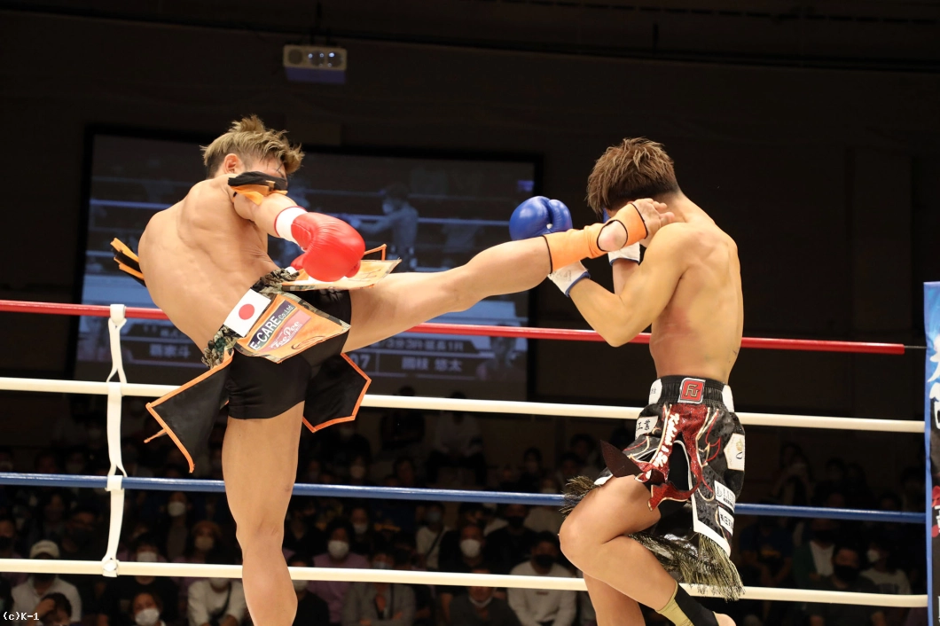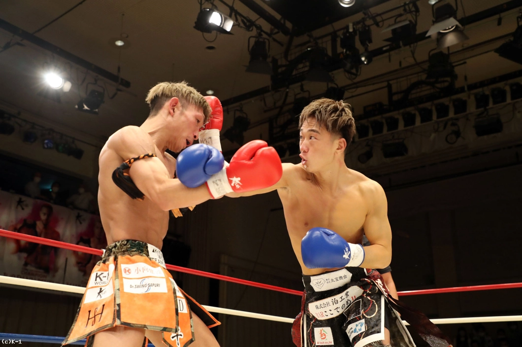 「(試合を振り返って)今回もKOで勝ててよかったです。勝った試合4つともKO勝ちなんで、12月のK-1大阪大会で使ってください。(相手の印象は?)試合前から僕のことを褒めてくれて、いい人と思っていたんですけど、試合後も気持ちよく話してくれたんで、いい人のままでした。(対策は?)僕自身は試合を見ると気持ちが入りすぎちゃうんで(相手の試合は)1試合も見てなくて、トレーナーの人に見てもらいました。トレーナーからは左フックが当たると言われていて、その通りやったかなと思います。