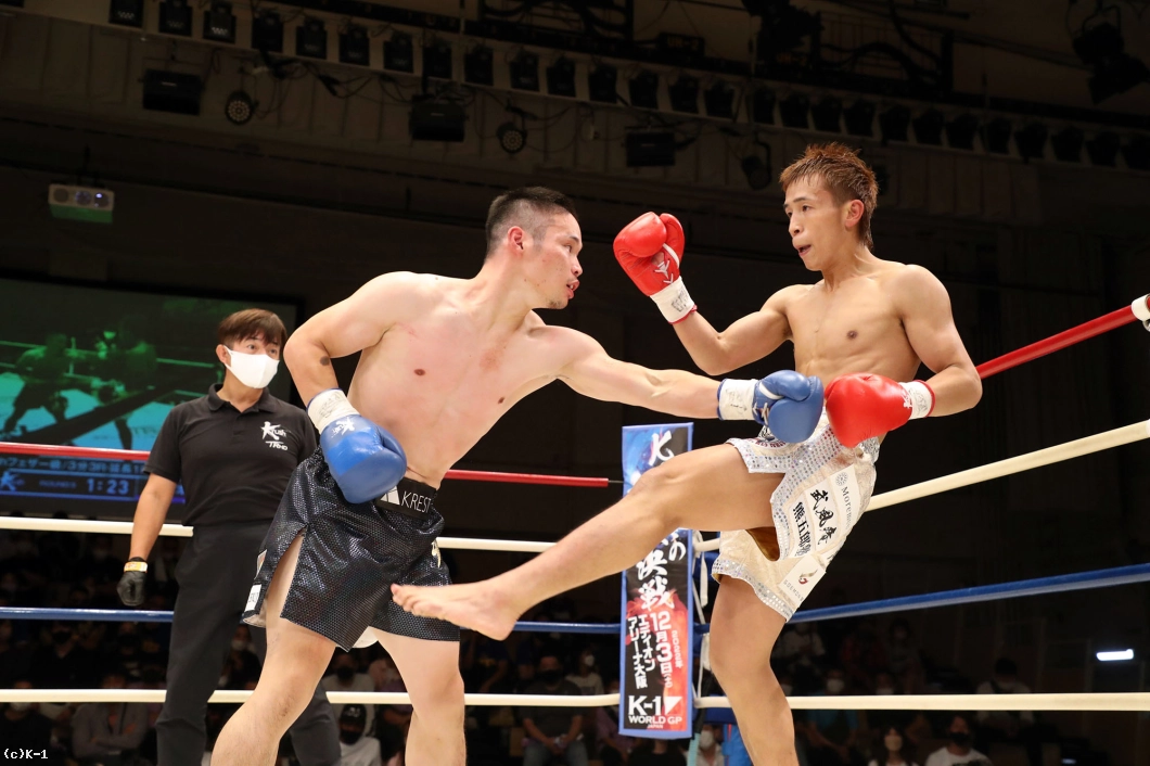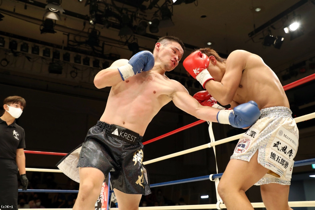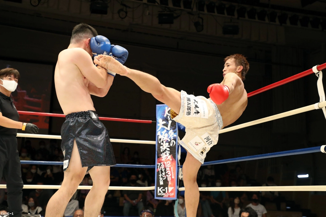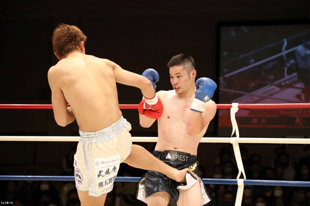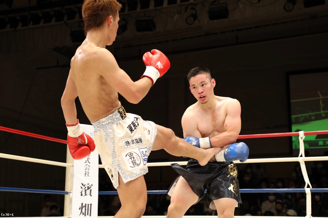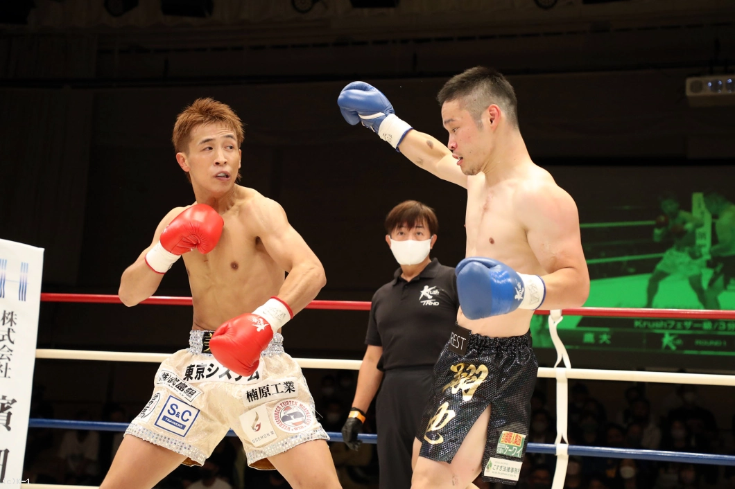 3R、鷹大が前蹴りとジャブ、左ミドルで桝本を間合いに入らせない。桝本が詰めても鷹大はフックを入れつつサイドにかわす。桝本はしかし前進を止めずボディフックで鷹大を削る。鷹大はしかし左フックを当て、桝本を足払いで転倒させる。判定は29-29、29-28、30-29の2-0で鷹大。桝本にパワーと圧力を発揮させず勝利した。