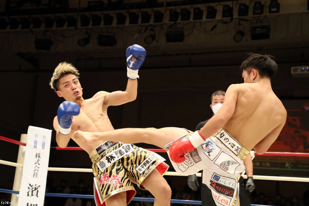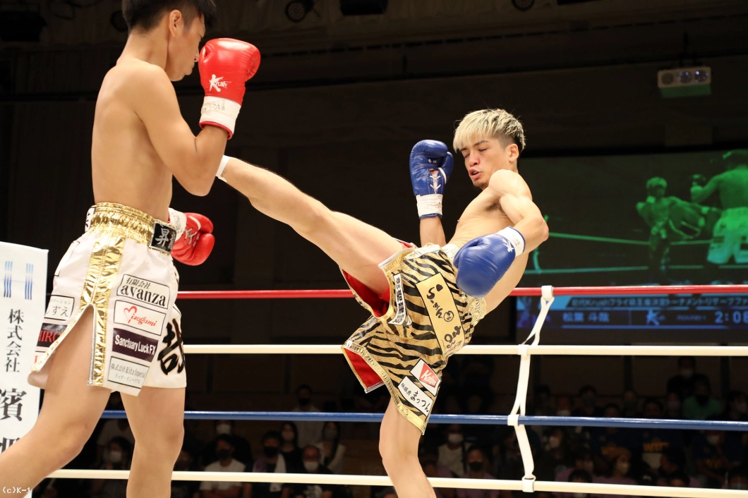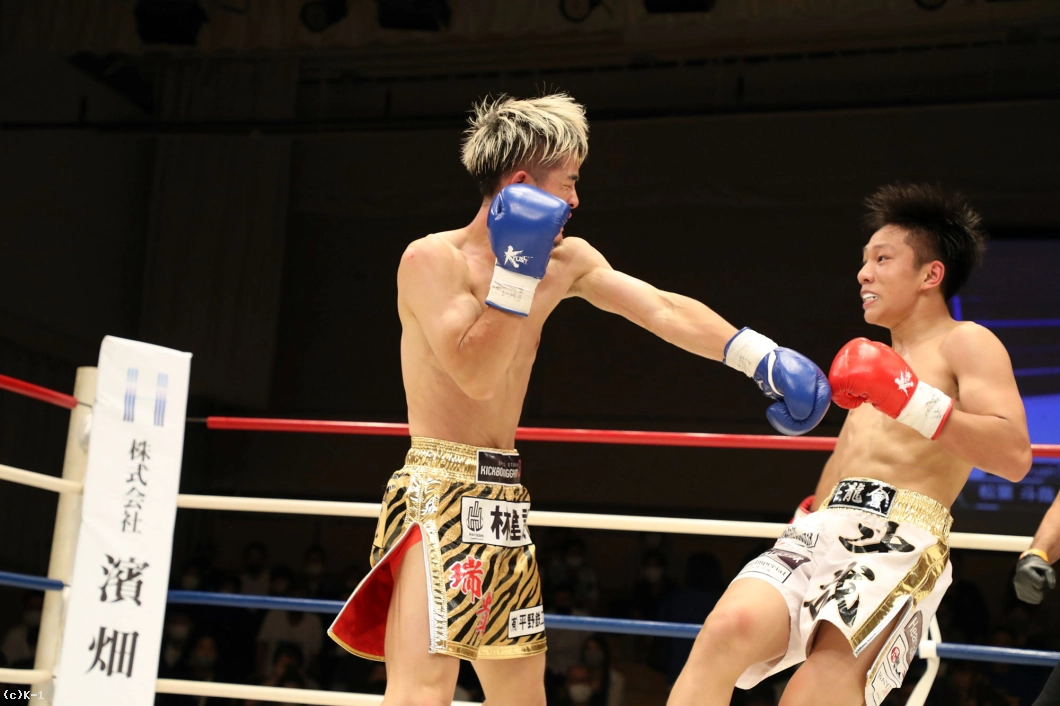 3R、サウスポーの瑞貴に対し松葉は左回りで試合を展開。右カーフキックで瑞貴の足を跳ね上げる。追ってくる瑞貴に対し、松葉はまず左ローを打ち込み、その後で左ハイキックを当て、これで瑞貴をダウンさせる。ダウンを奪い返さんと向かう瑞貴だが、松葉は胴回し回転蹴り。さらに2段蹴り、右ストレート、左フック、バックブローと攻勢で試合を終える。判定は30-28、30-28、29-28の3-0で松葉。トーナメントリザーバーの権利を手にした。