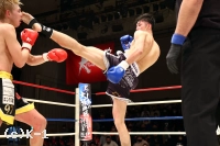 3R、塚本は距離を詰めてヒザを放っていく。両者掴みが多くなり、レフェリーから注意が出される。松岡は首相撲からヒザを連発で放ってしまい、減点1が課される。