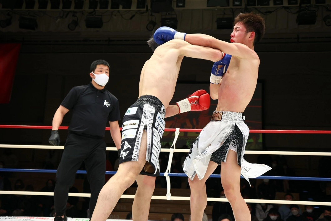 立ち上がった安尾は左フックとストレートでダウンを挽回せんとするが、長野はサウスポーに変わって左ミドルの鈍い音を響かせる。