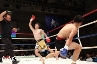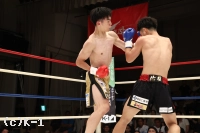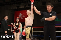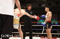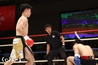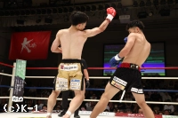 1R、サウスポーに構える黒川。林が速い右ロー、右ミドルを連打すると、黒川も左をカーフ、ミドルに打ち分ける。リーチの長い左フックから右ストレートを見せる黒川。打ち終わりに前に出た林の入り際にさらに右ストレートを合わせ、林からダウンを奪う。立ち上がった林を左飛びヒザ蹴りで攻める黒川。ジリジリと前に出る林へ右ボディ、左フック、右フックの三連打で再びダウンを奪う。立ち上がった林はパンチで前に出るも、打ち合いの中で黒川が左のフックを打ち下ろし3度目のダウンを奪取。立て続けに3度のダウンを奪った黒川がKO勝利で決勝へコマを進めた。