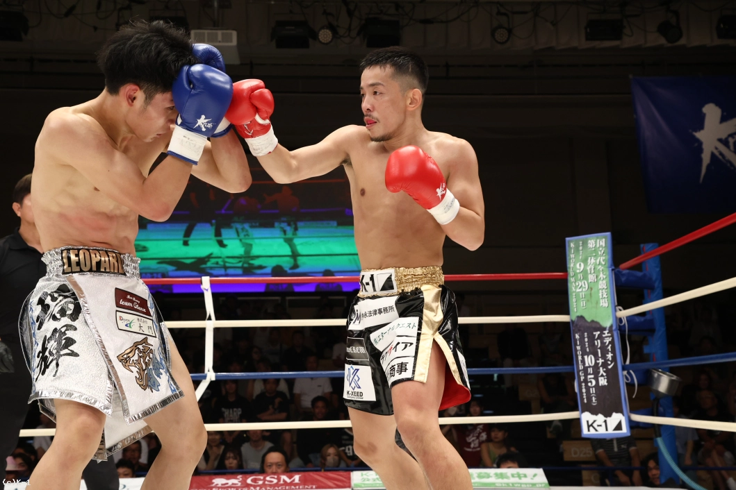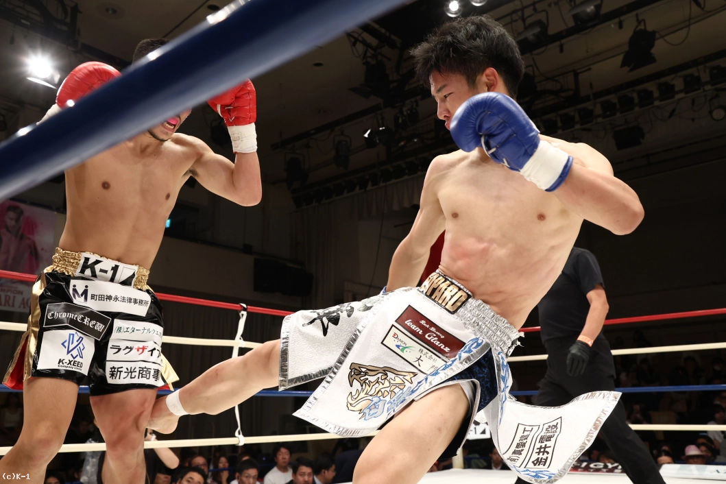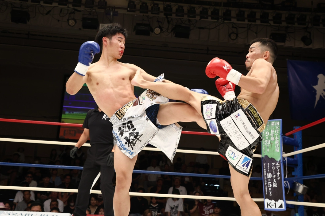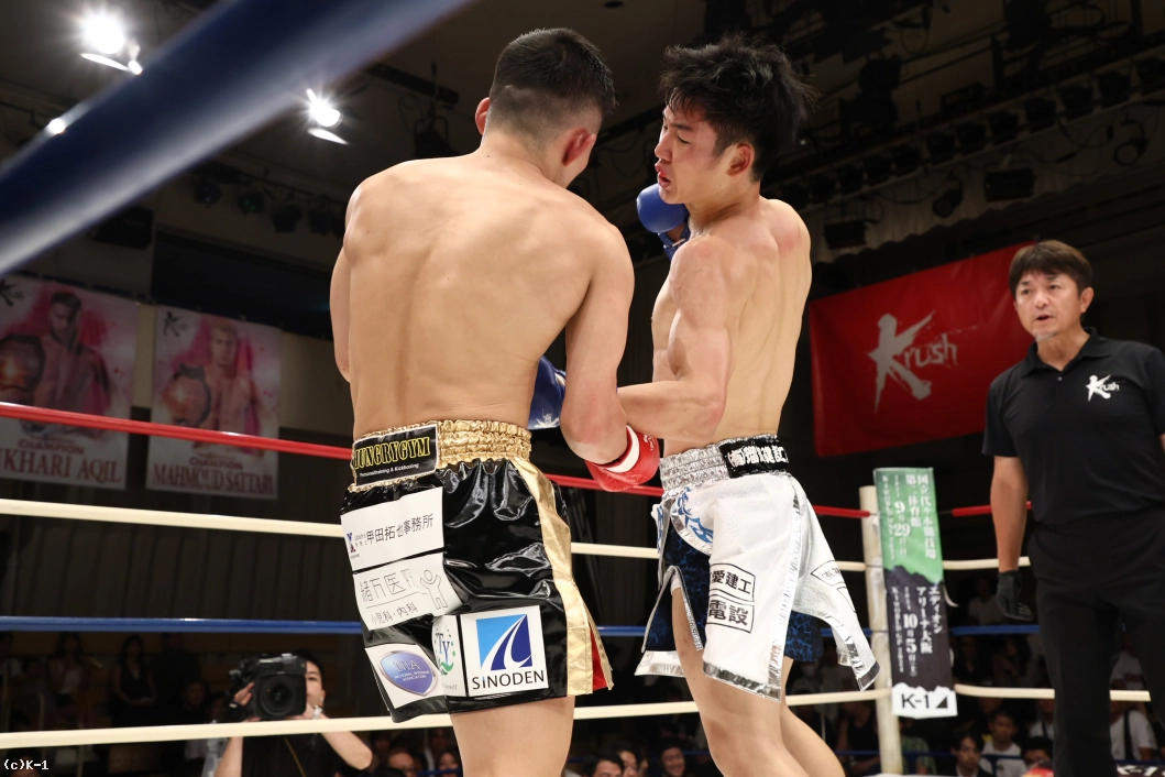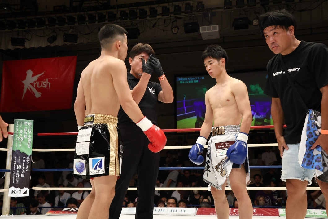 1R、両者フットワークを使いリングを大きく回る。細かいフットワークからワンツーで飛び込む悠斗に蹴り技で応戦する安尾。悠斗が左ボディを突き刺せば、安尾は左ミドルで突き放す。悠斗がリングの中央に位置する安尾を軸にリングを回る。安尾は悠斗の進行方向へ右ミドルを放ち、悠斗の打ち終わりにパンチを返していく。