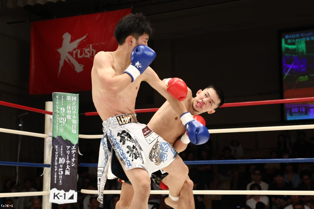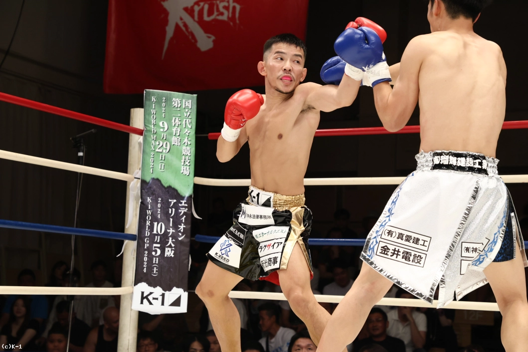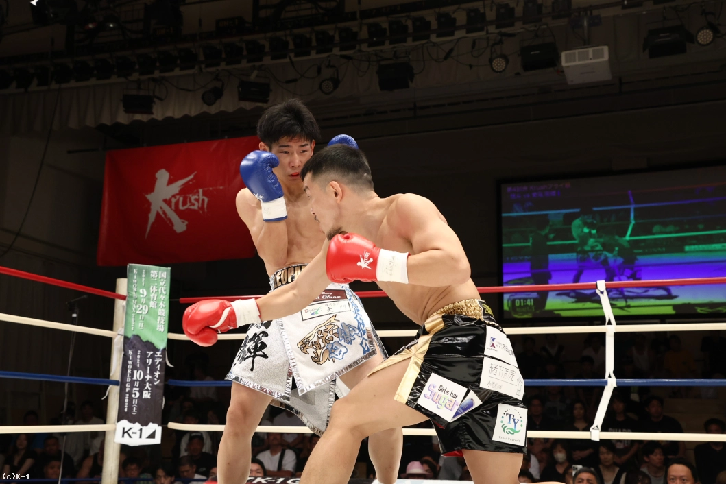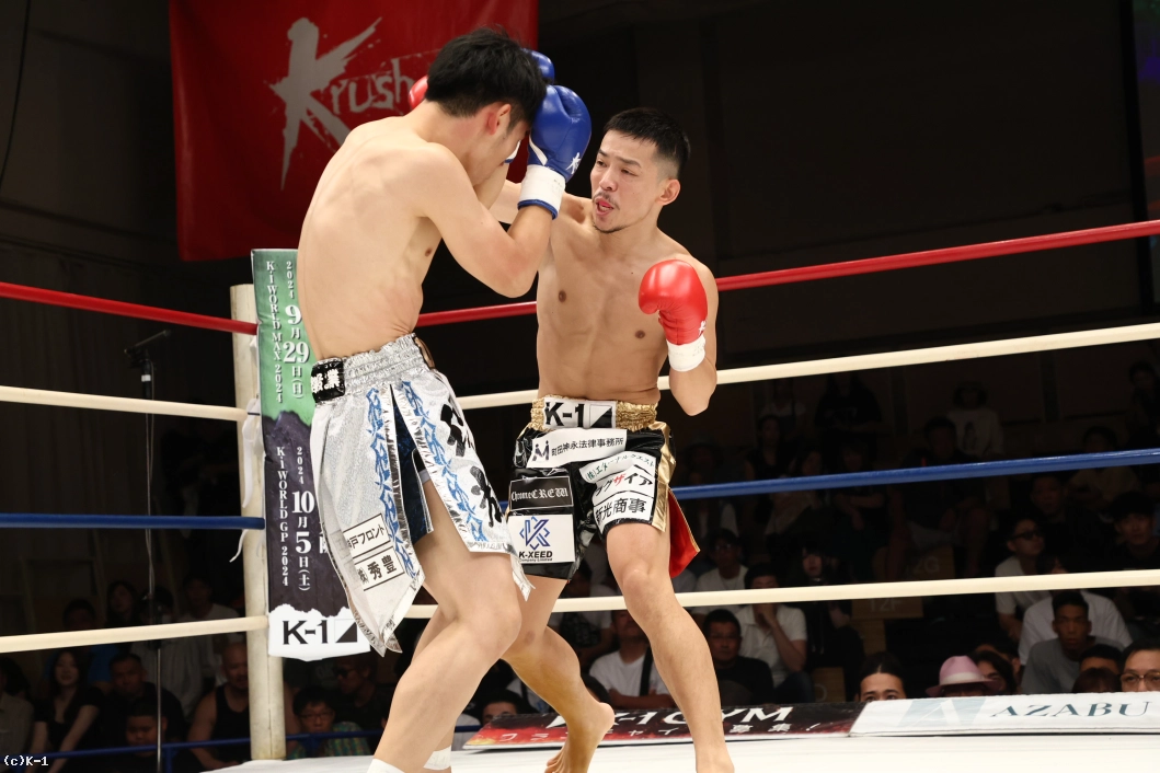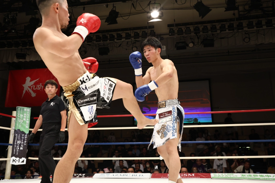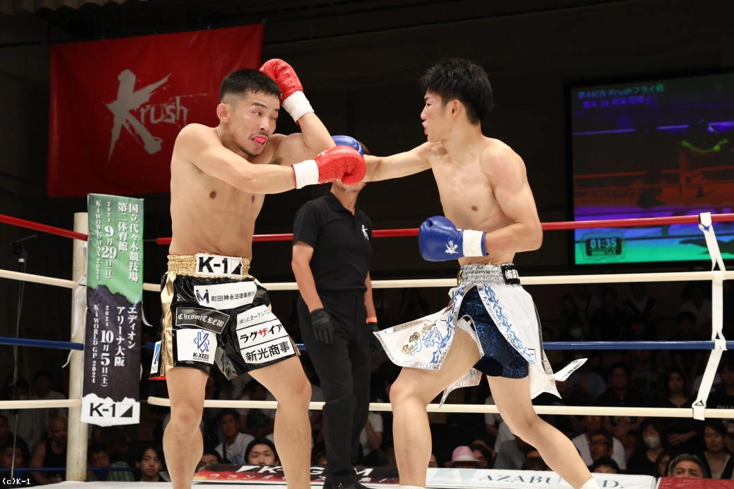 1R、両者フットワークを使いリングを大きく回る。細かいフットワークからワンツーで飛び込む悠斗に蹴り技で応戦する安尾。悠斗が左ボディを突き刺せば、安尾は左ミドルで突き放す。悠斗がリングの中央に位置する安尾を軸にリングを回る。安尾は悠斗の進行方向へ右ミドルを放ち、悠斗の打ち終わりにパンチを返していく。