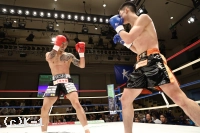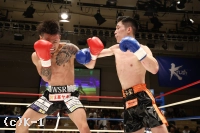 1R、前に出る光佑に下がりながら合わせる宮本。パンチで飛び込む光佑にサウスポーの宮本がタイミング良くパンチを合わせる。宮本が右の前手で引っかけるようなフック。光佑の入り際に強い左ボディをあわせる。左右に動く宮本を追う光佑はコーナー際で右飛びヒザ蹴り。ラウンド終了間際には再び飛びヒザ蹴りで圧力を掛ける。