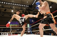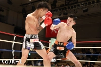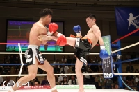 2R、光佑の右三日月蹴りが宮本の下腹部に入り一時中断。再開後に飛び込んだ光佑に宮本が鋭い右ジャブを突き刺しアゴを跳ね上げる。宮本がサイドに回りながらアッパー気味の右ジャブ。直線的に追う光佑に宮本が左飛びヒザ蹴りをカウンターで直撃させる。