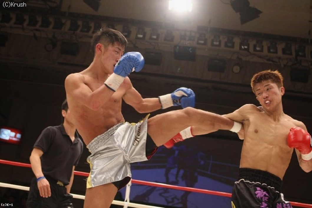1R、いきなり朝久が強烈な左右のミドルから一気にパンチで前に出る。伊藤もガードを固めて左ミドルを蹴り返し、左フックと右ストレートを打ち返す。お互いに強烈なミドルを蹴り合って一歩も退かない両者。朝久はバックスピンキックと顔面前蹴り、伊藤は左フックと左ミドルを蹴る。ジャブ・左ミドルで前に出る伊藤。朝久も右フックをかぶせて、左ミドルや顔面前蹴りを返す。