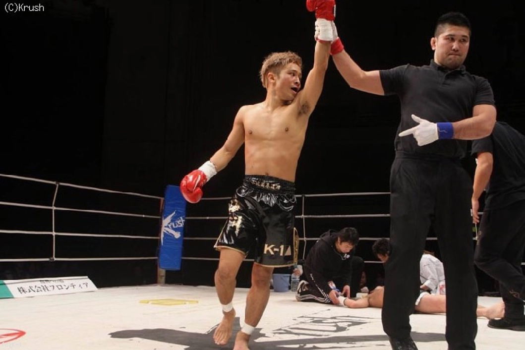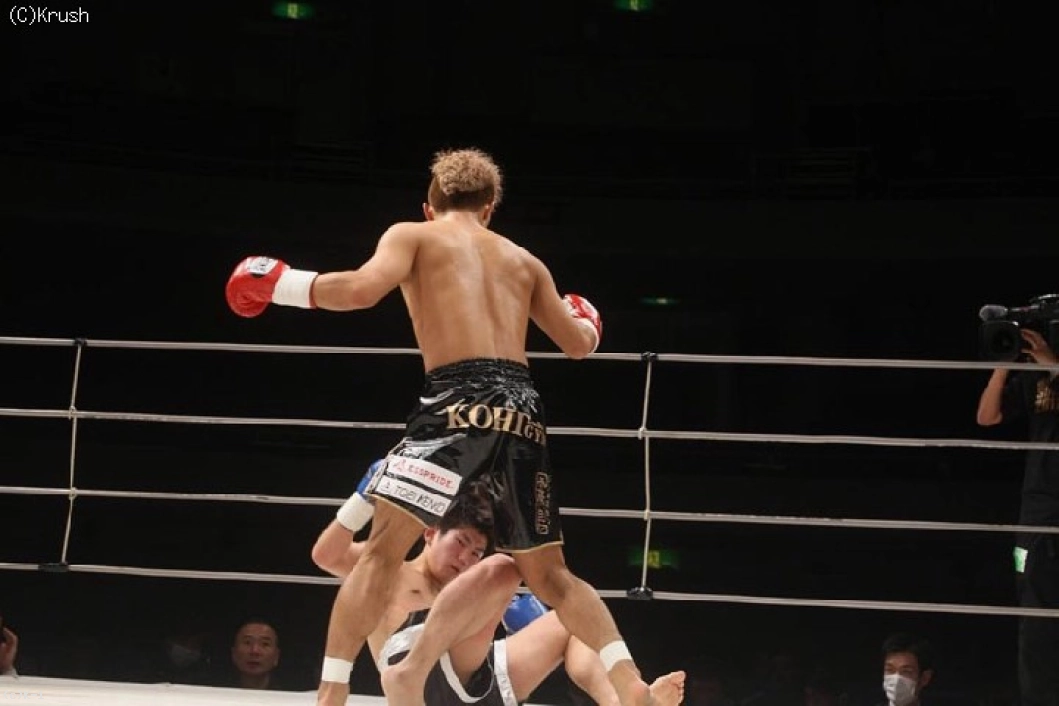 しかし2Rに入ると小澤がプレッシャーをかけ、リョウタのローに右フックを合わせると、最後は右フックをリョウタの顔面に叩き込み、そのままリョウタが後方にバッタリとダウン。そのまま立ち上がることが出来ず、小澤が衝撃的なKO勝利を見せた。