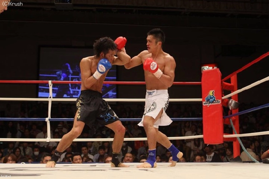3R、パンチとヒザ蹴りで突進する松野。後藤もヒザ蹴りにフックを返すが、松野の手数は止まらない。パンチ、ヒザ蹴り、ミドルで攻撃す続ける松野。後藤も下がりながら顔面のボディにフックを返す。判定はジャッジが三者三様のドローとなった。