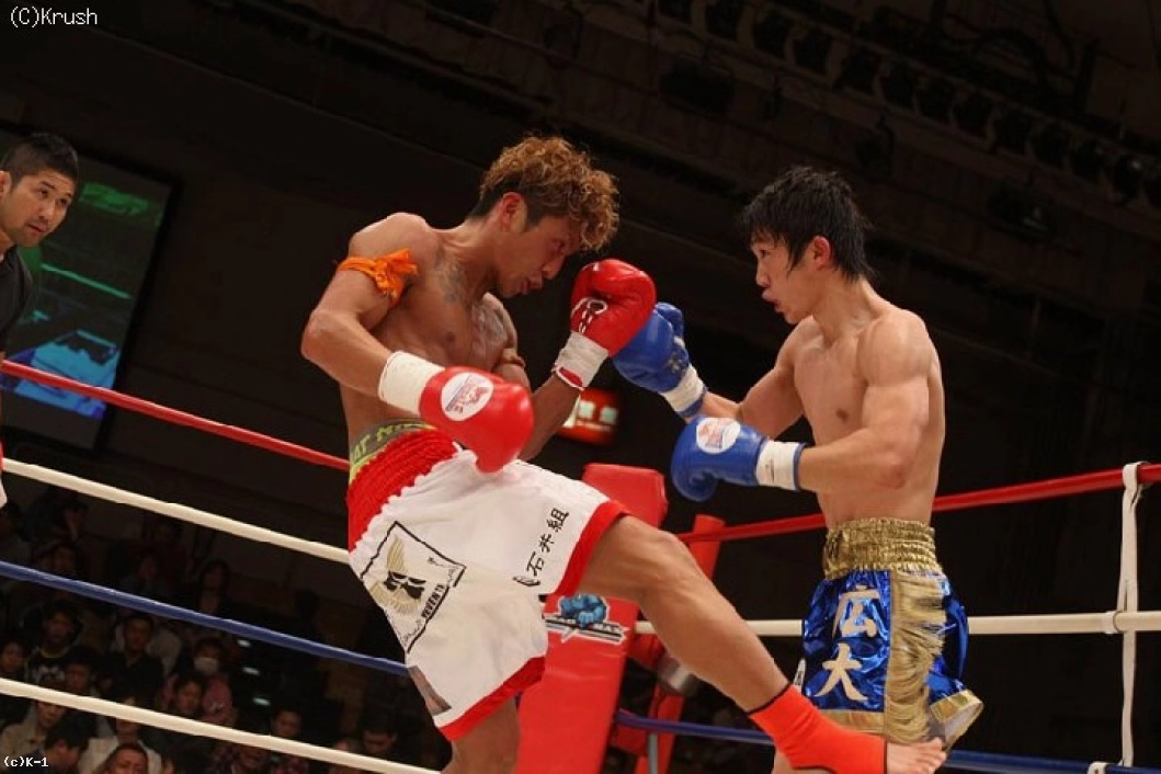 3R、野辺が離れた間合いから左ミドル、右ストレートで飛び込む。闘士も右ストレートを返して前に出て、右ローにつなげる。ここでもクリンチが増えて、闘士に警告が与えられる。再開後、お互いの右ストレートと左フックが激しく交錯。野辺がハイキックを狙えば、闘士も右アッパー。終了のゴングまで激しく打ち合い続け一進一退の攻防が続き、試合はドローに終わった。