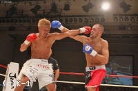 2R、ここもサウスポーに構える城戸が左ミドル。ミラーがインローを蹴ると、強烈な奥足ローを返す。ミラーがパンチで前に出てくると、城戸はバックブローと奥足ロー。ミラーは城戸をロープに詰めて右アッパーと右フック、城戸は左ハイキックを蹴る。ミラーの攻撃を受けて城戸は左ローを蹴り返し、カウンターの左のヒザ蹴り。ミラーが強引にパンチで前に出ると、バッティングがあり試合が一時中断となる。再開後、前に出るミラーに城戸が左ローと左のヒザ蹴りを狙う。