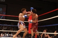 3R、ダウンのポイントを挽回しようと必死に前に出るHIROYAは、梶原をロープに詰めて左フック! これが梶原の顔面をとらえるが、梶原も右ストレート! 梶原が「打って来いよ」とHIROYAに呼びかけると、2人は足を止めて真っ向から打ち合い、場内は一気にヒートアップ! 激しい打ち合いの中、試合終了のゴングが打ち鳴らされた! 判定はダウンを奪った梶原の勝利!