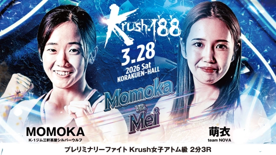 「Krush.188」3.28(土)後楽園 MOMOKA vs 萌衣 コメント公開! 「前回の試合以上の内容で、しっかり勝ち切る」(MOMOKA)vs「どんな試合展開になっても絶対に勝ち切る」(萌衣)