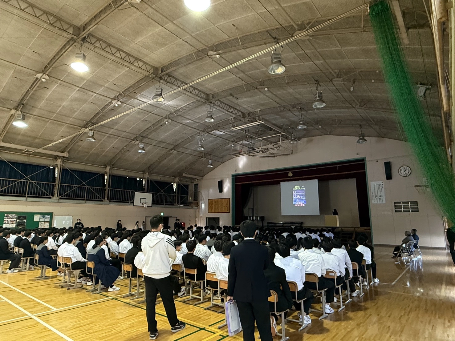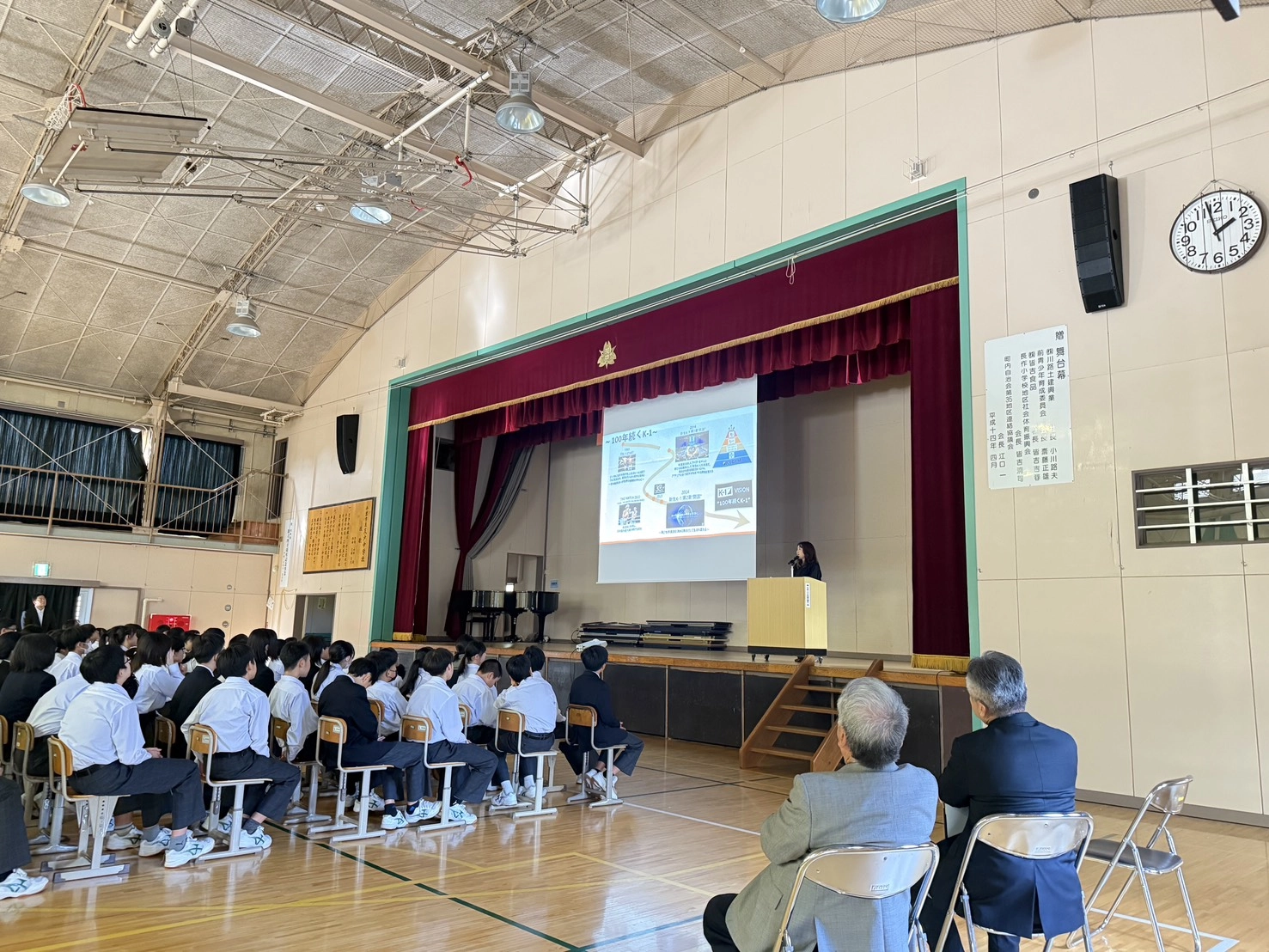 M-1スポーツメディアの大木知葉代表取締役が母校で講演会!約300人の中学生の前で夢を語る